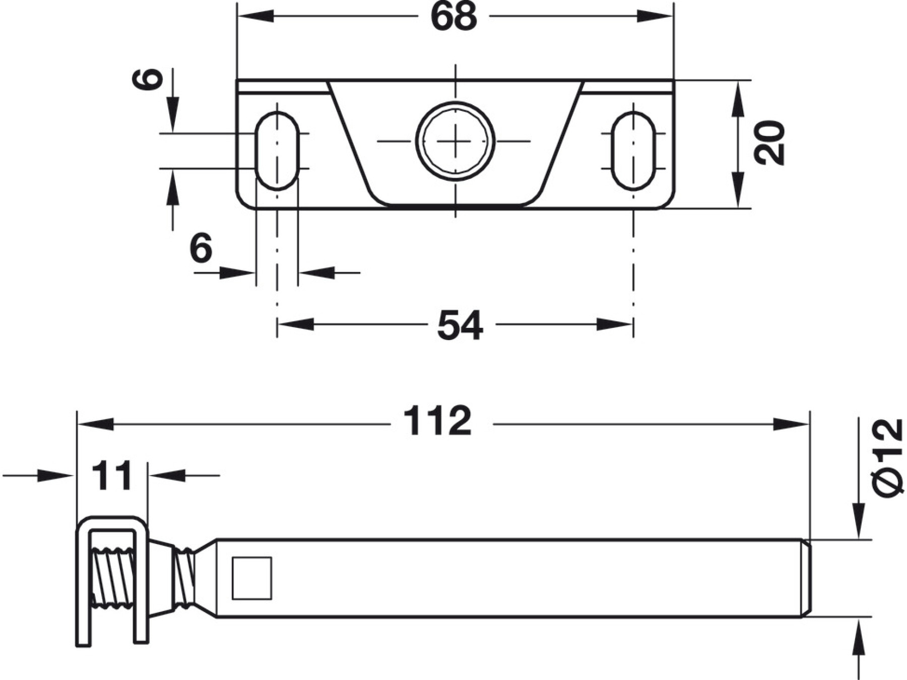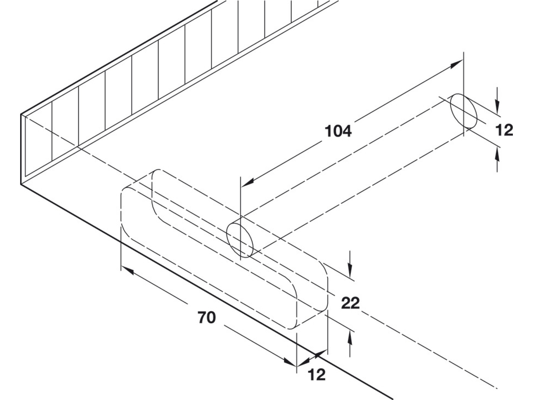 Supporting pin is installed in a Ø 12 mm hole in the shelf, the pin may be exposed or concealed depending on the thickness of the shelf