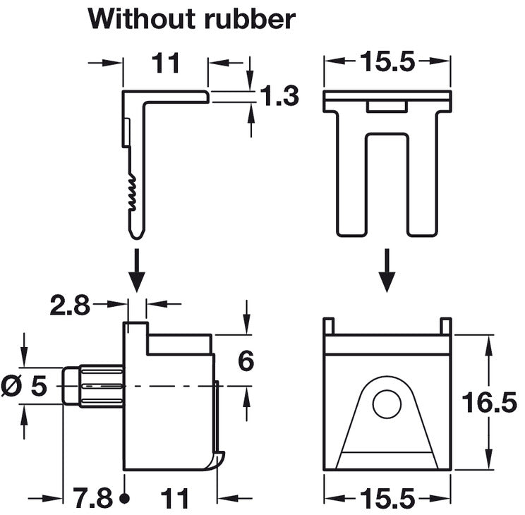 Kubic Gls Shelf Support 5-9mm wo Rubber