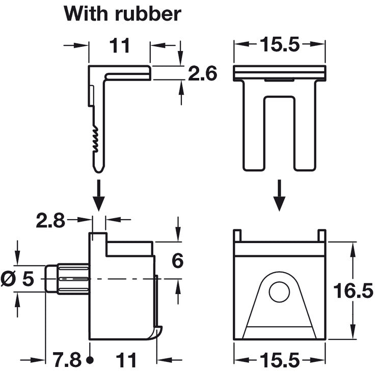Kubic Gls Shelf Support 4-8mm w Rubber