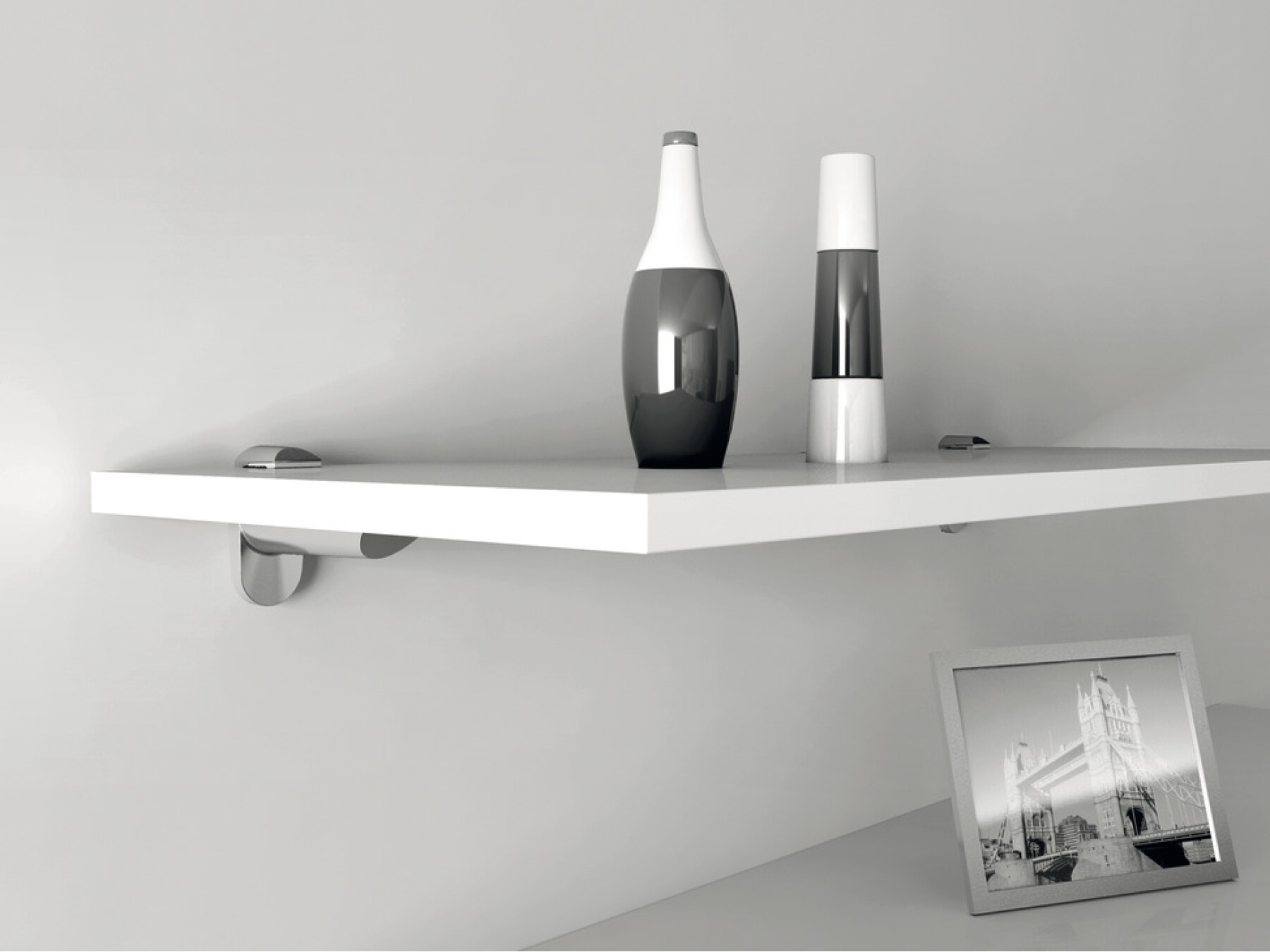 These shelf supports can be spaced every 400-500 mm, depending on the use, load, material and thickness of the shelf