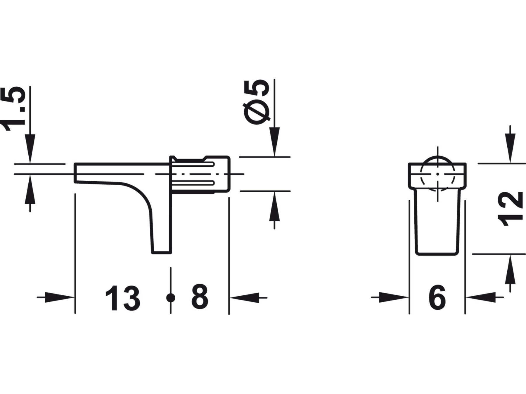 Load bearing capacity per item, tested in accordance with DIN EN 16337:2013-08 with 1.7 kg plate for impact test with shelf size 300 x 1000 x 19 mm, i.e. 62.4 kg load bearing capacity when using 4 shelf supports