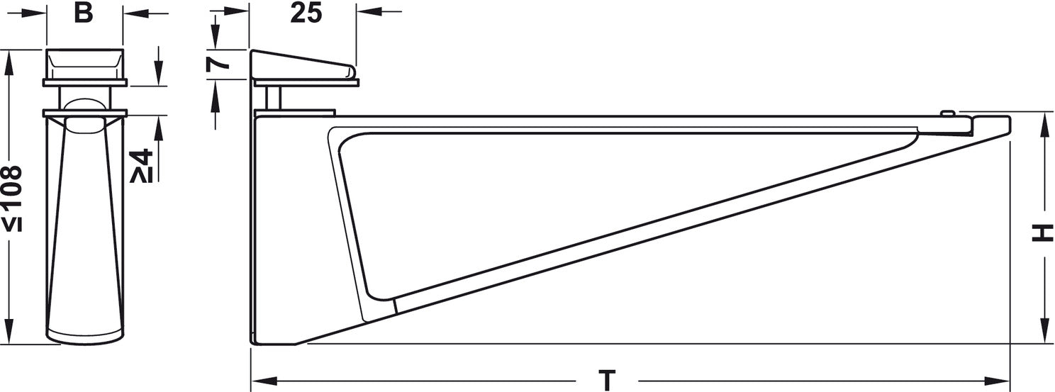 Shelf depth: min 170 mm, max. 210Spacing between brackets: max. 700 mm
