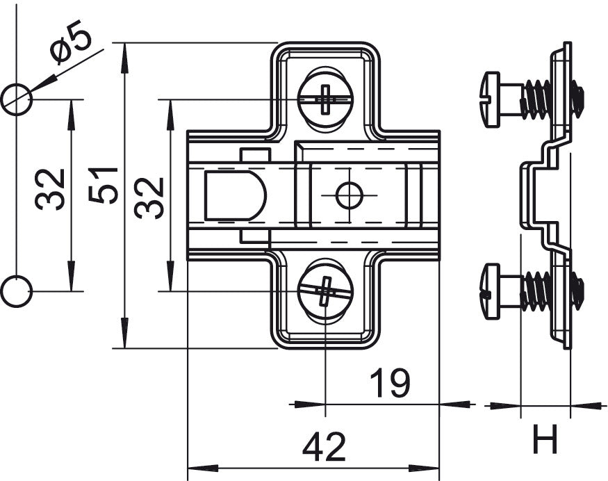 - Adjustment facility: One part plate with ± 2 mm height adjustment