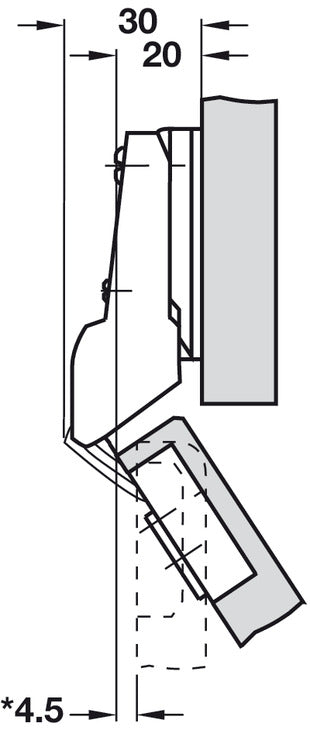 - Drilling depth: Hinge cup 11 mm