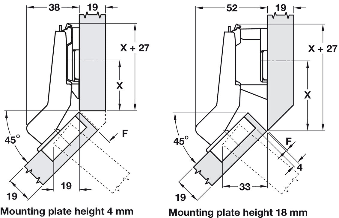 - Drilling depth: Hinge cup 11.8 mm