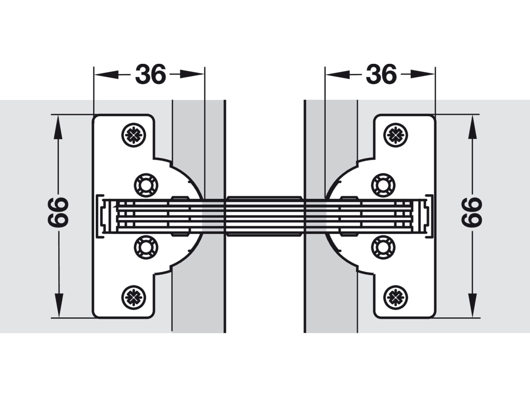 The only hinge that can be used for furniture structures with mitred cabinet corners and door.