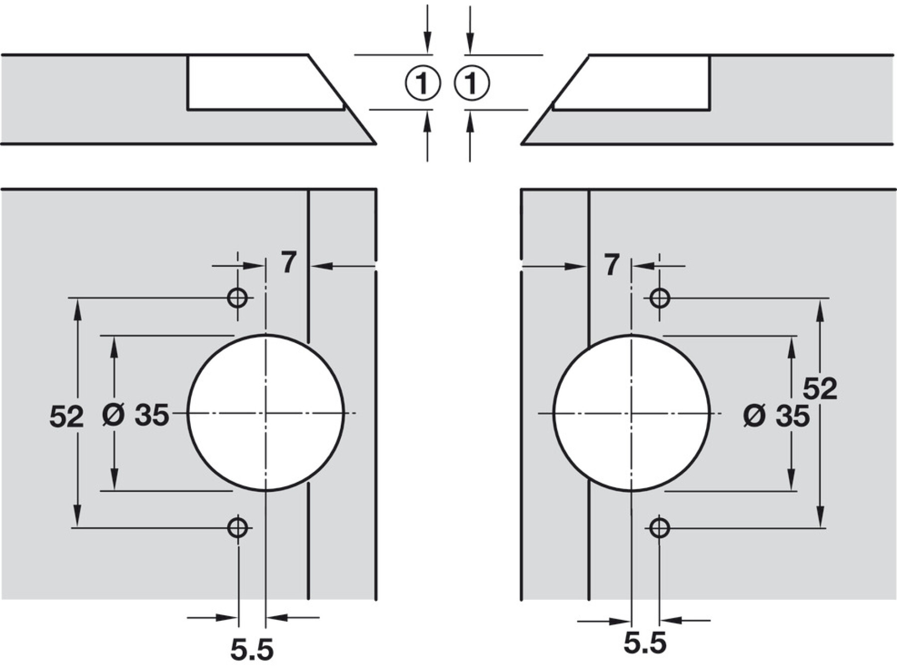 The edge must be chamfered by 3 mm from a side panel thickness of 20 mm.