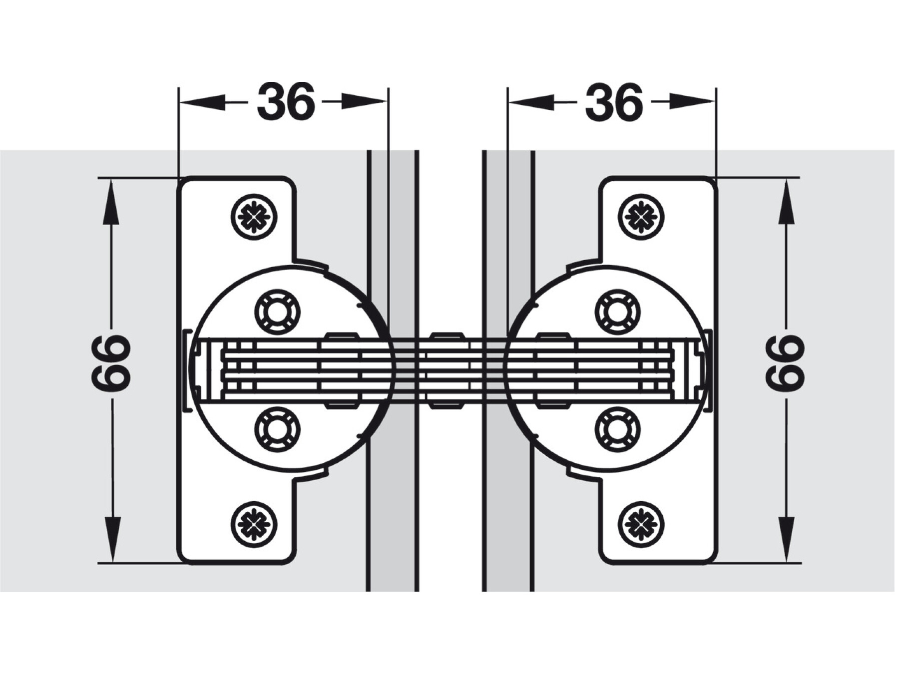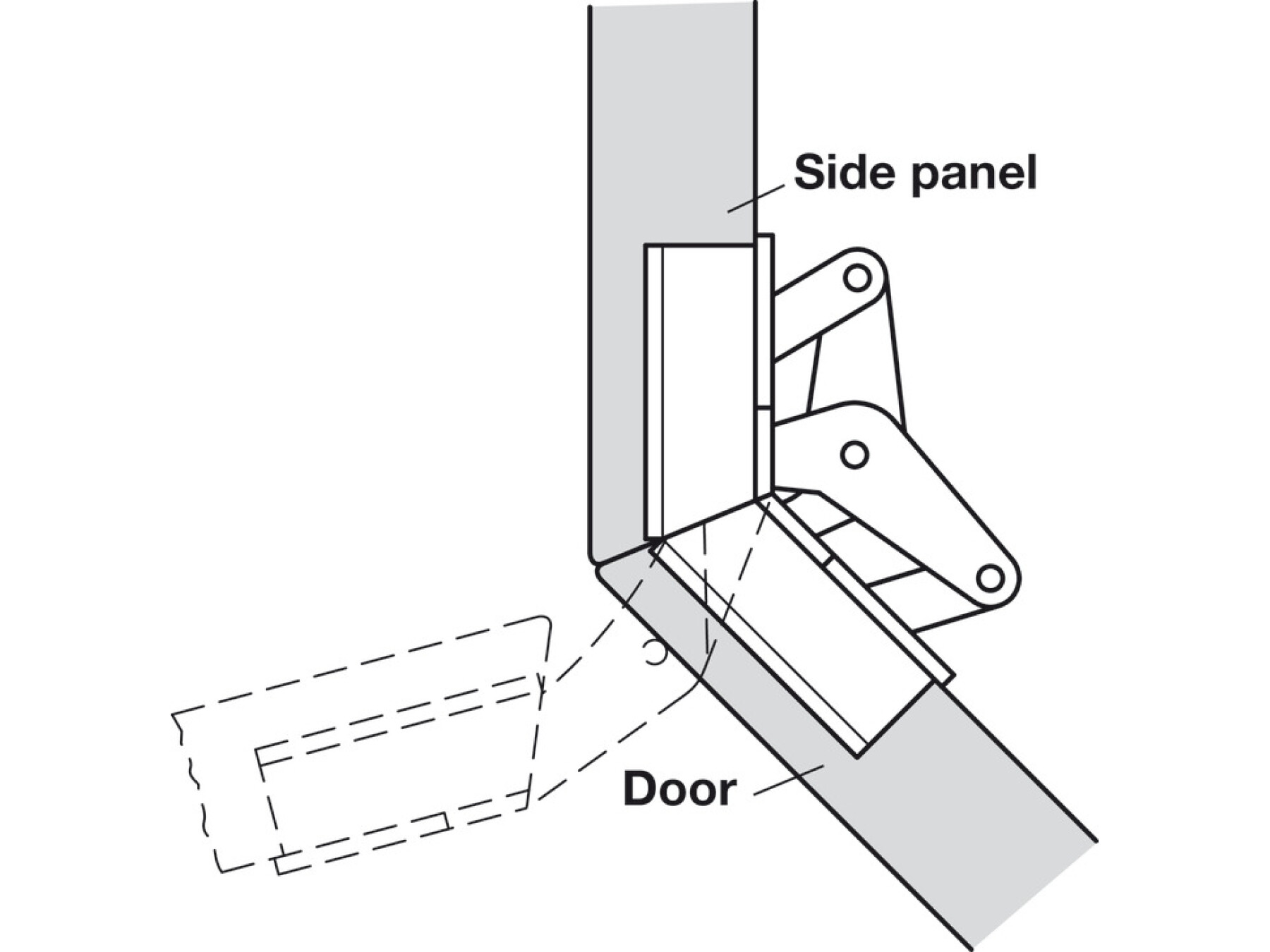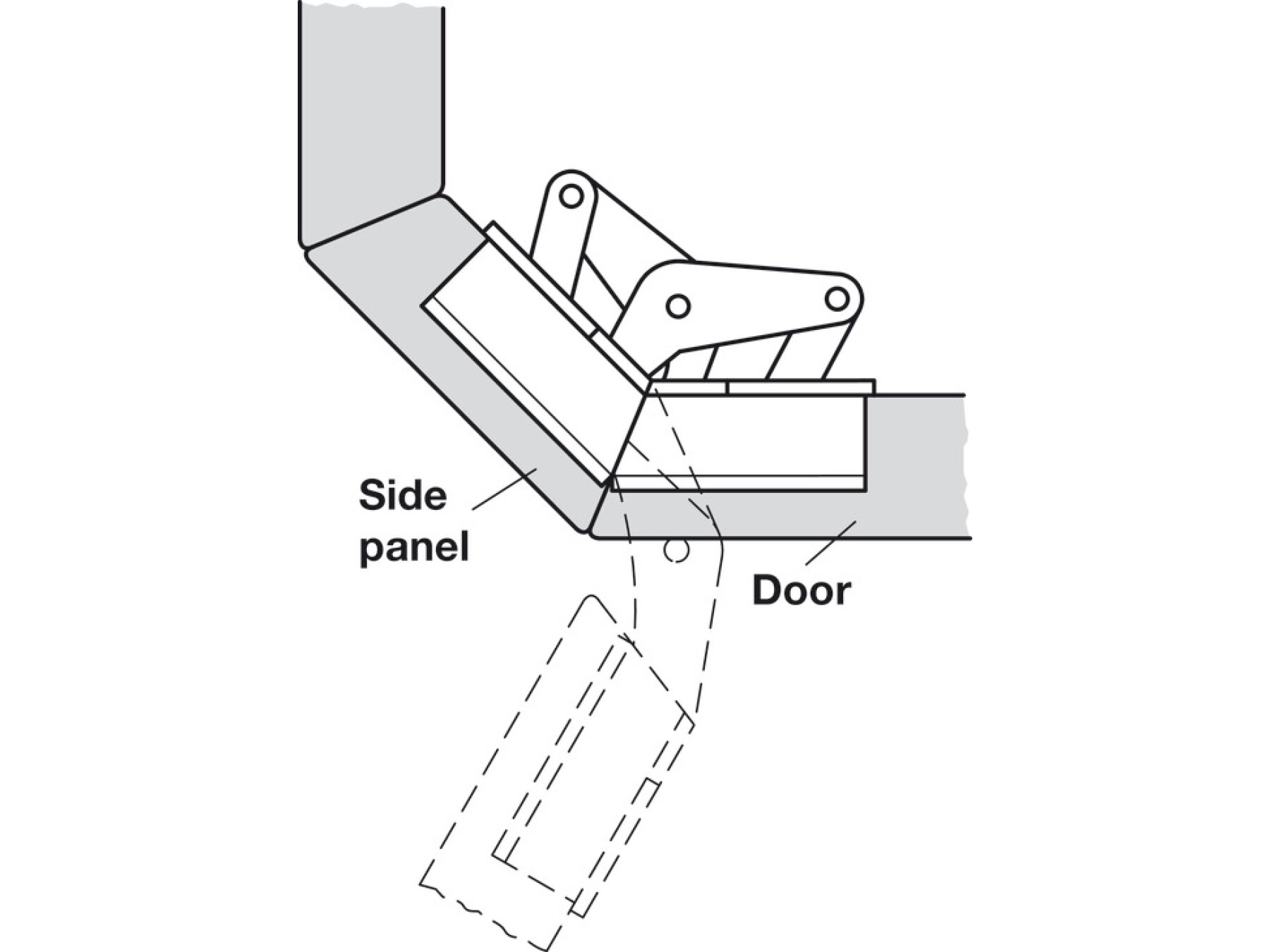The only hinge that can be used for furniture structures with mitred cabinet corners and door.