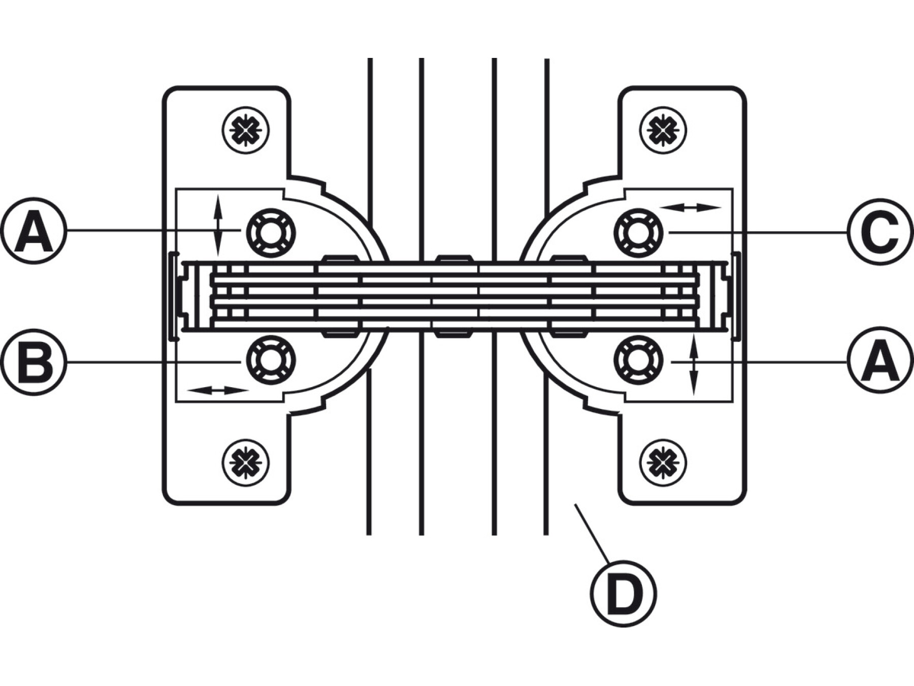 Side adjustment: 1.5 mm, Depth adjustment: 1.5 mm, Up to 3 mm in 3 directions