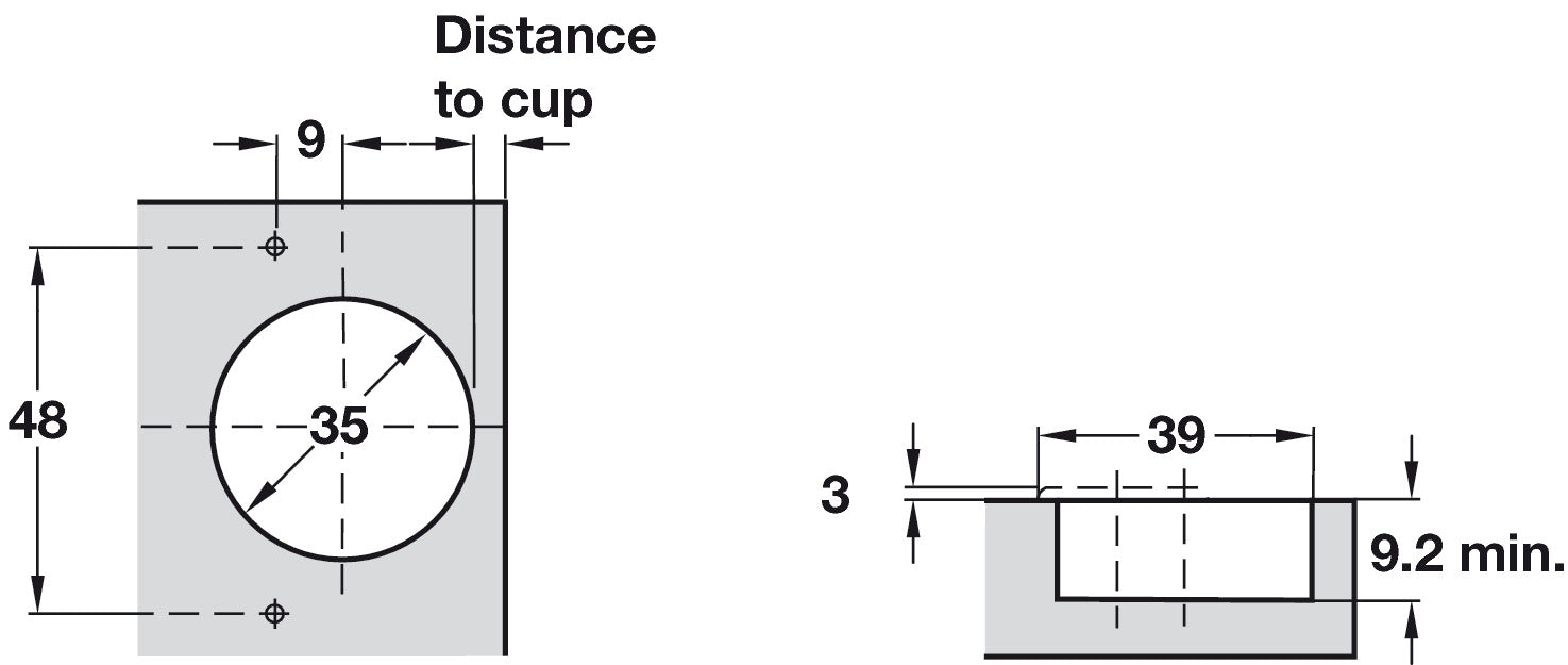 Ø 35 mm cupIdeal for thin doors or four-sided mitred applications 110°