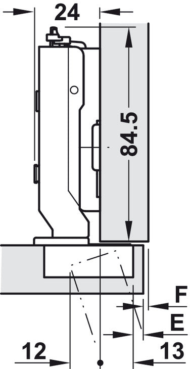 √ò 35 mm cupUp to 24 mm overlay