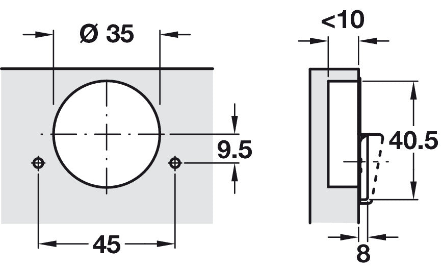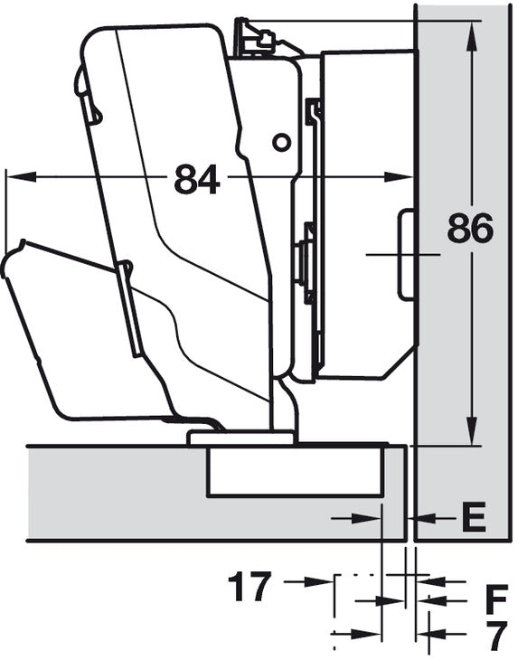 • Note: Can also be used for inset mounting if 19 or 21 mm mounting plates are used. Set mounting plate back by door thickness +1.5 mm