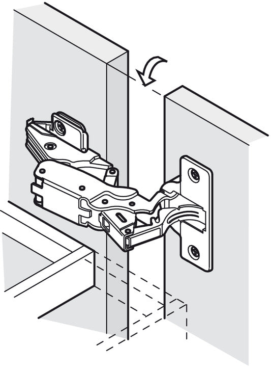 - Note: Can also be used for inset mounting if 19 or 21 mm mounting plates are used. Set mounting plate back by door thickness +1.5mm