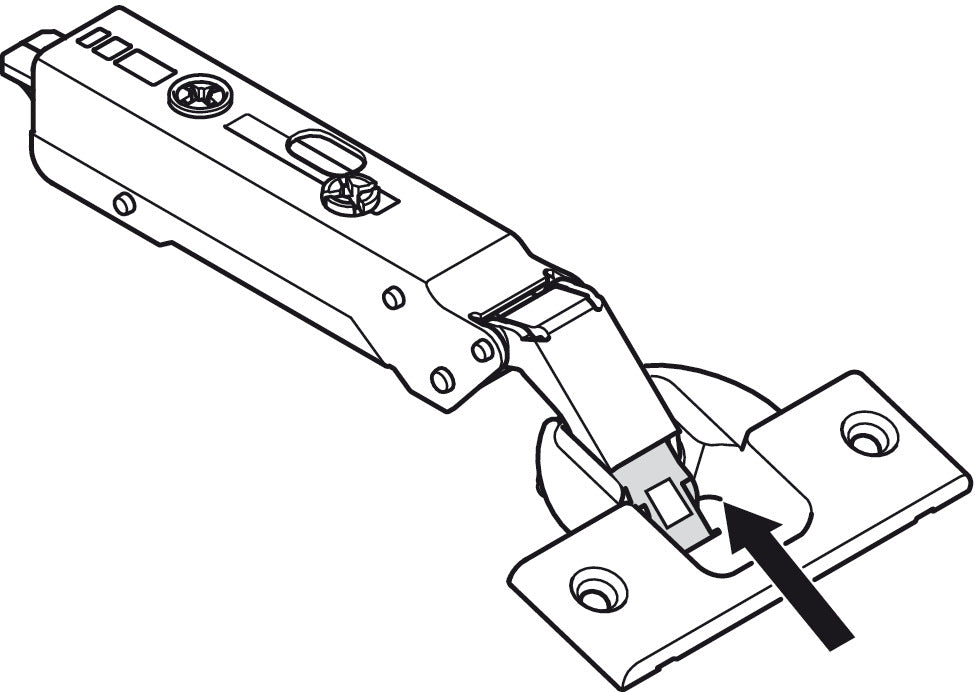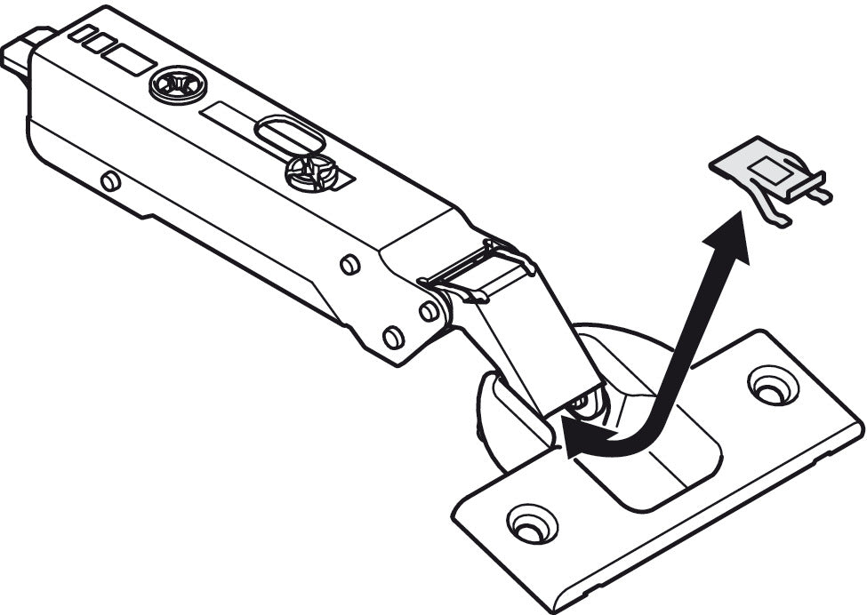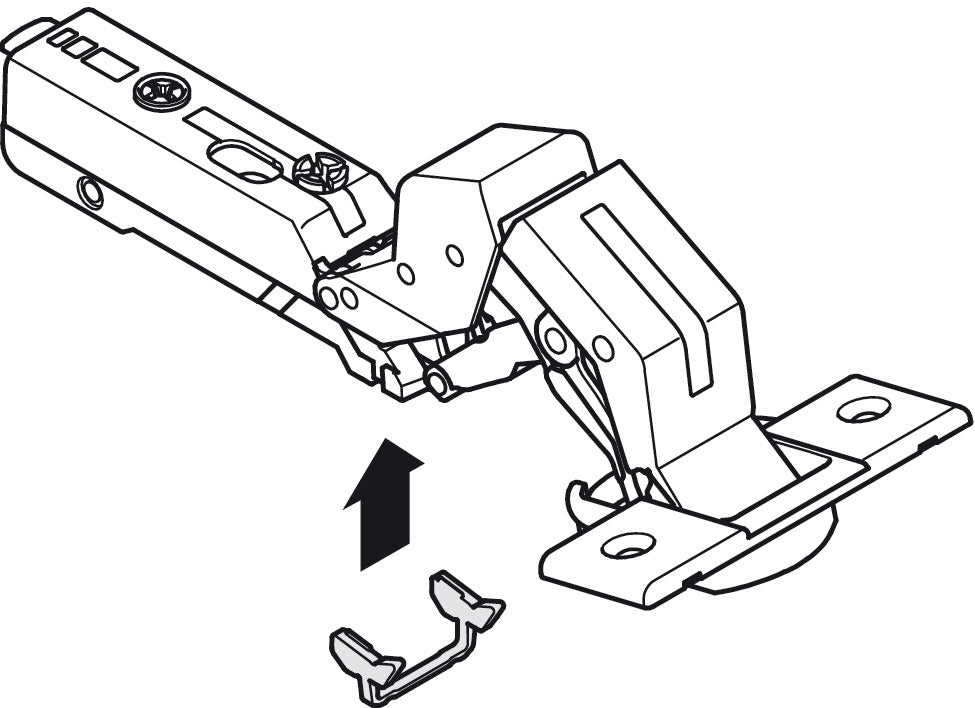 Prevents the door from butting against front panels or walls with corner mounting by reducing opening angle to 120°