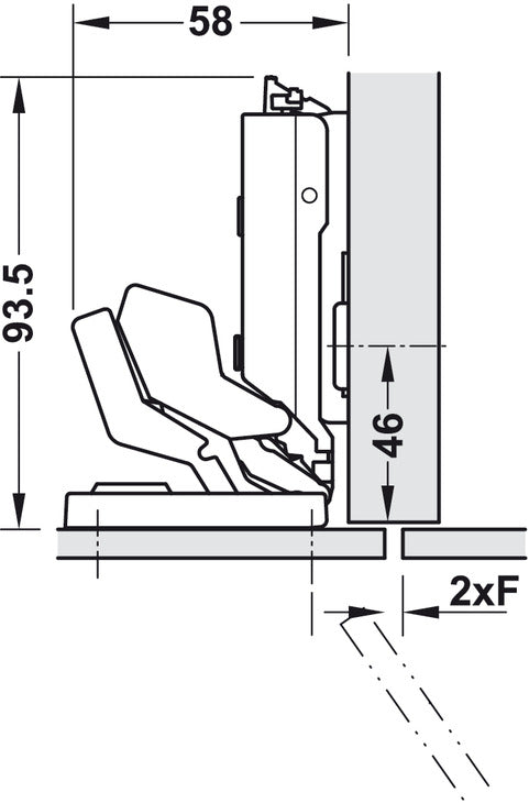 Door overlay up to 19 mmWith integrated, adjustable soft closing mechanism with 3 settings or with opening mechanism