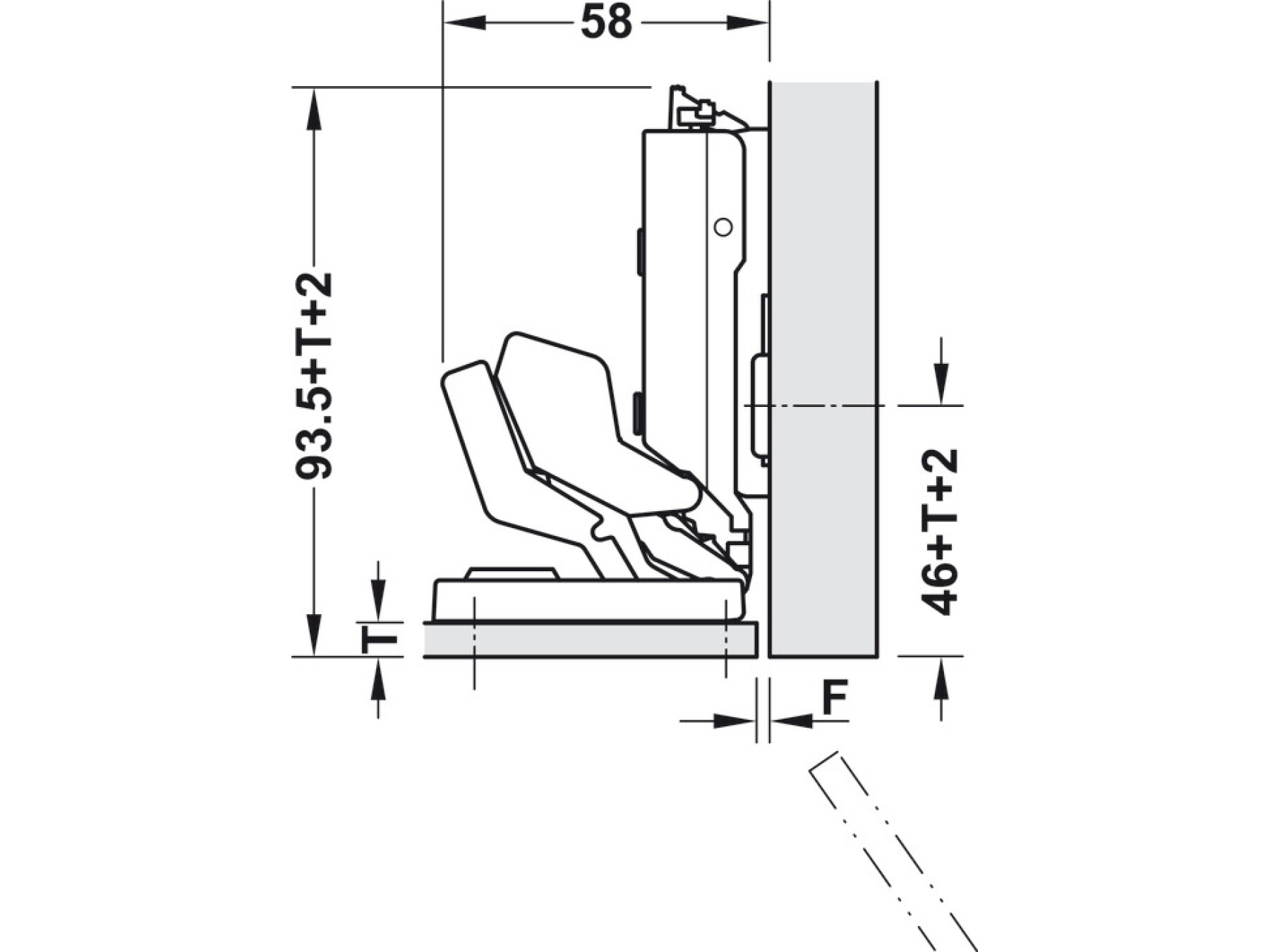 Applies to hinge with factory settings, glass thickness from 3 to 8 mm with chamfered edges (r = 1mm) and gluing dim. Z from 4 to 26 mm