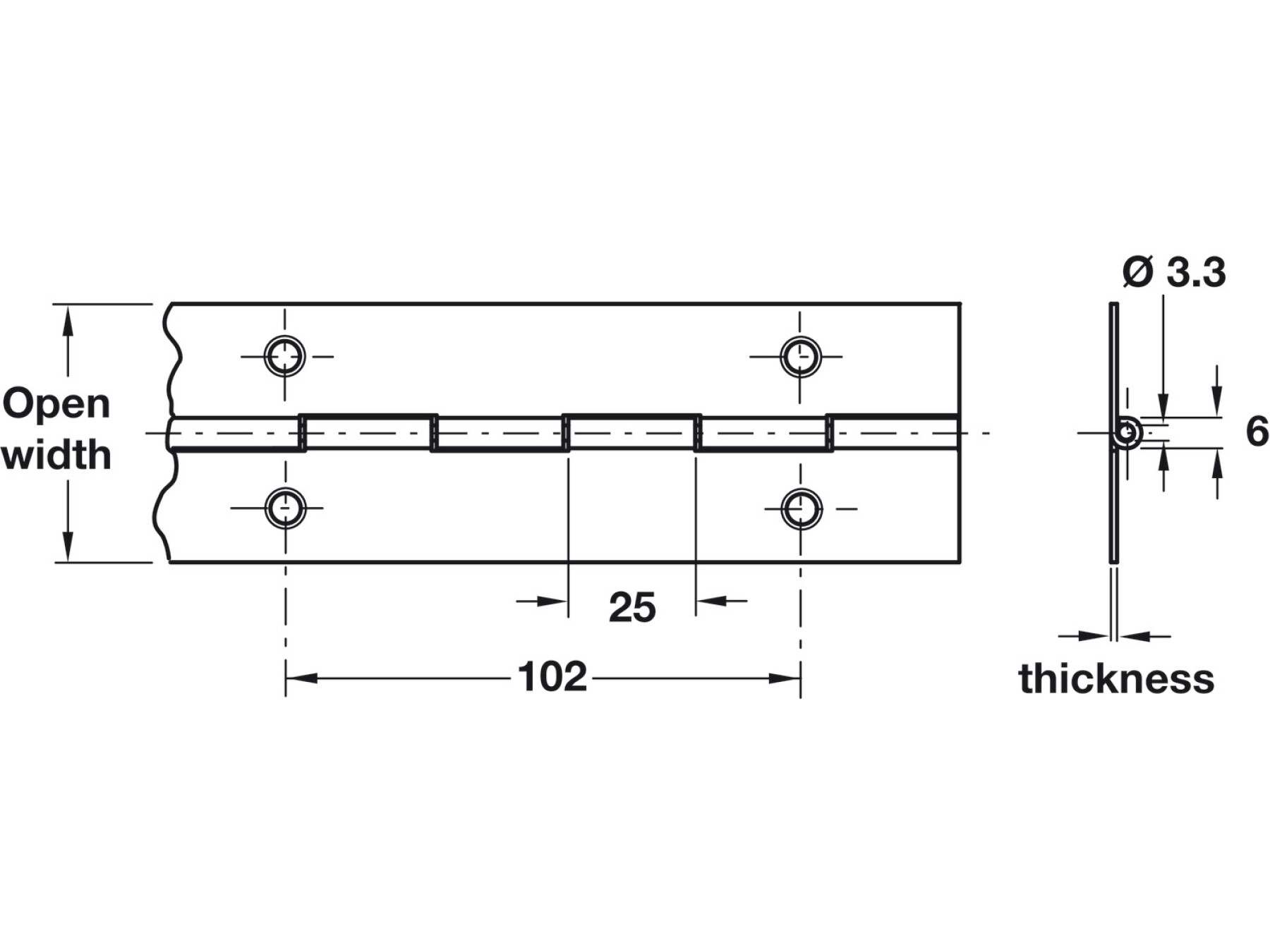 Light/medium duty36 holes per hingeRegular lubrication required