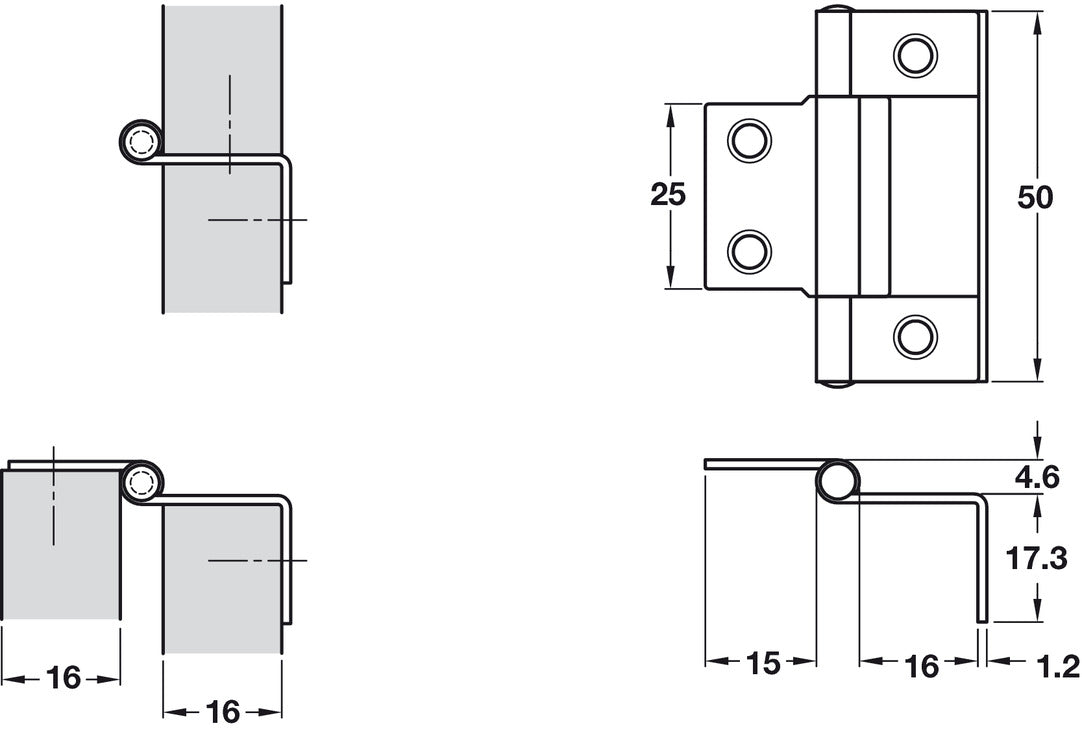 Cranked Flush Hinge 15-16mm 50mm St FB