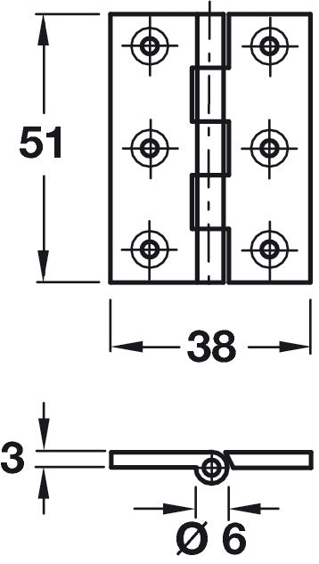 • Butt Hinge, Heavy Gauge, 51 x 38 mm
