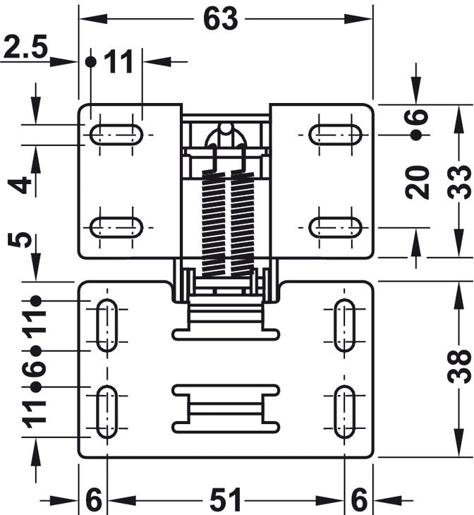 Caravan hinge for light flaps up to 2.1 kg - Adjustment facility: Side and depth adjustment via slots