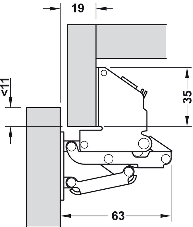 - Swing Up Flap Hinge, for Mounting with Panel, Opening Angle 90°