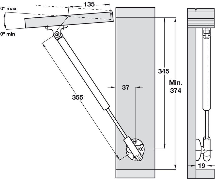 Lid Stay Automatic Opening 355mm 160N
