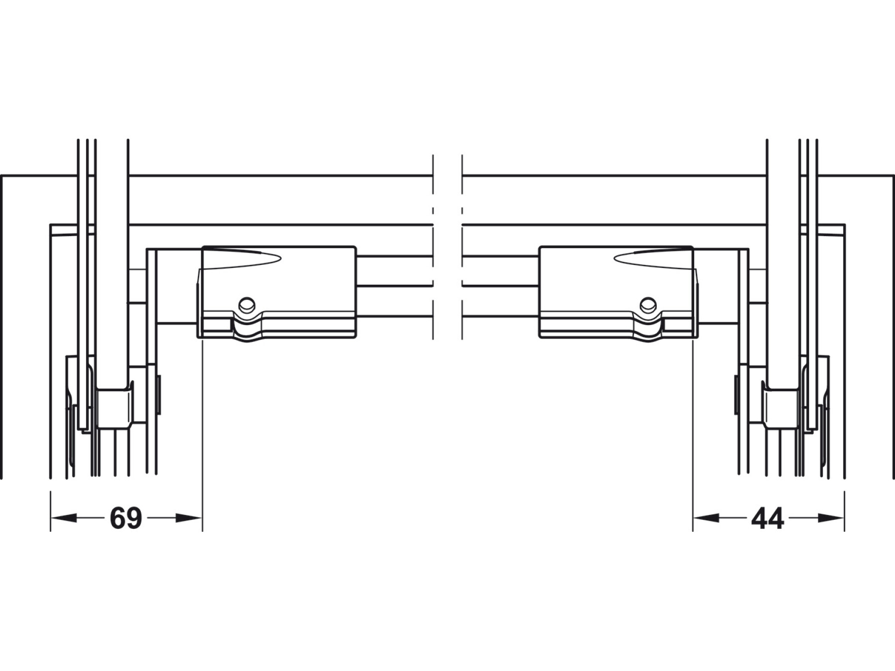 This Cross Bar, for E-Drive, to suit Free Up and Free Swing E is for side panel thickness of 16–19 mm and for cabinet width 600 mm, making it an ideal choice for correctly sized furniture builds. It’s made from aluminium with an anodized finish, offering durability and a clean, professional look that complements modern cabinet designs.