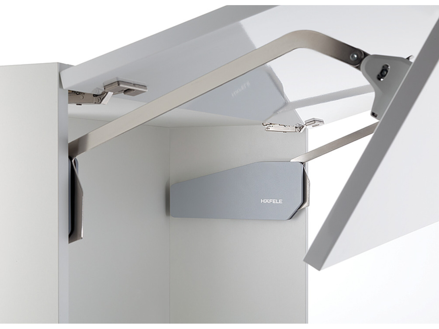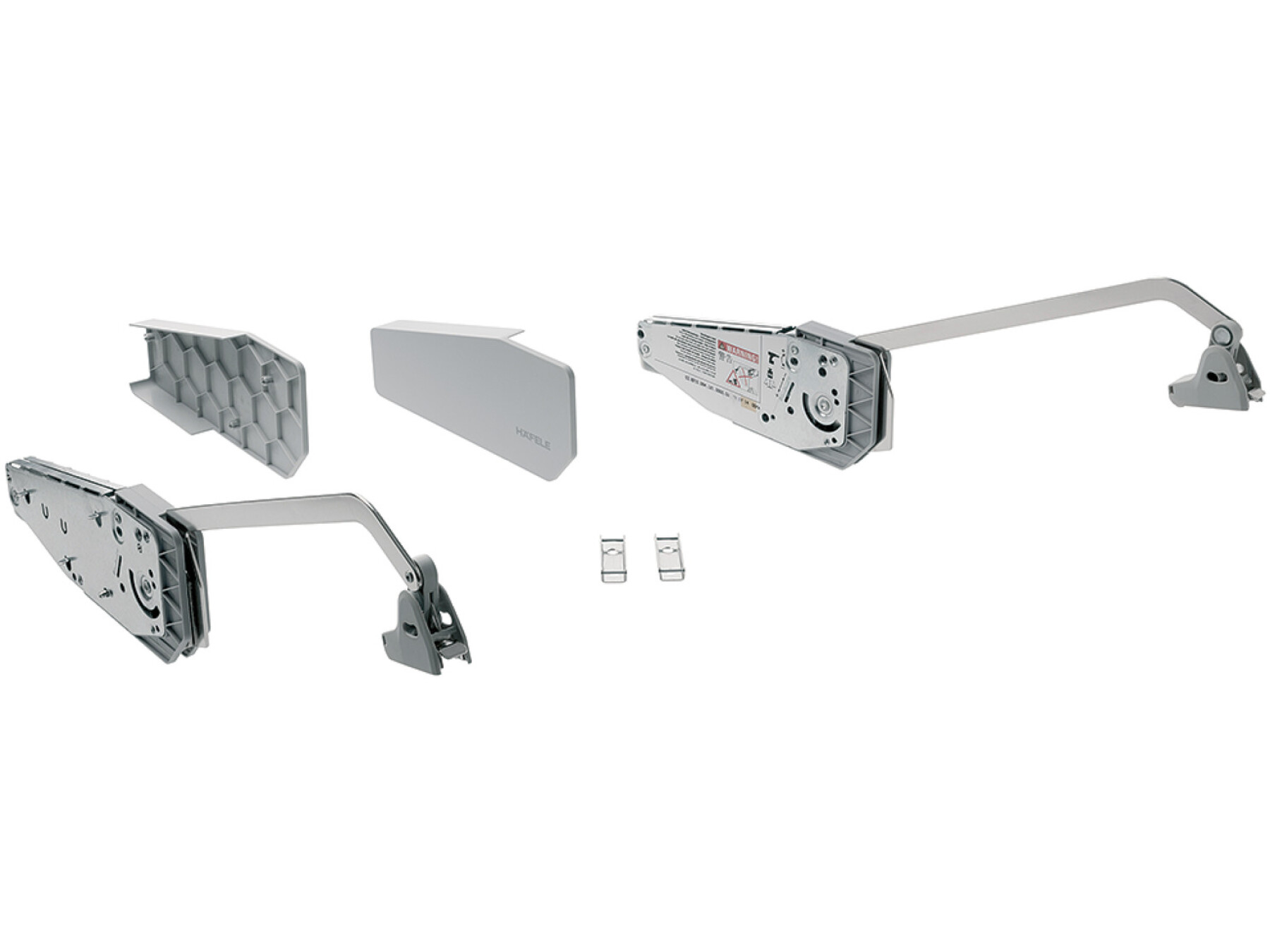 For 2-piece flaps with division 1:1 made from wood or with aluminium frame, For cabinet height 840-910 mm, for flap weight 4.7-8.9 kg, grey