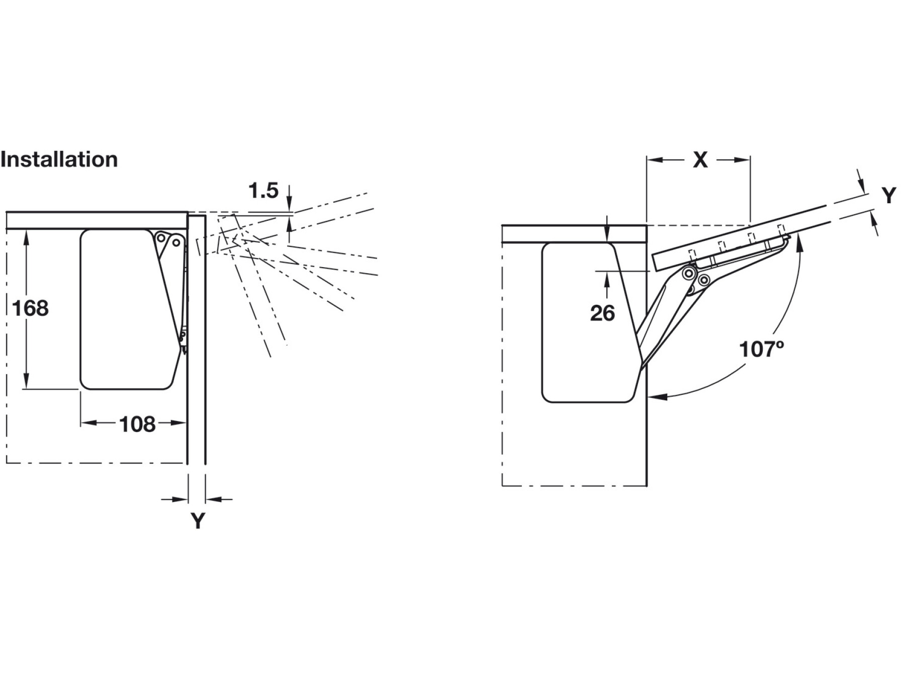 Single Door Flap Fitting, Complete Set, Free Flap 1.7 (Part No: 372.91.372) is a premium flap fitting solution designed to give your furniture doors a smooth, controlled lift-up movement and a smart, modern finish. Ideal for projects where style and performance matter, this 107° opening angle flap set brings reliable operation to small, one-piece flaps made from wood or fitted with an aluminium frame.