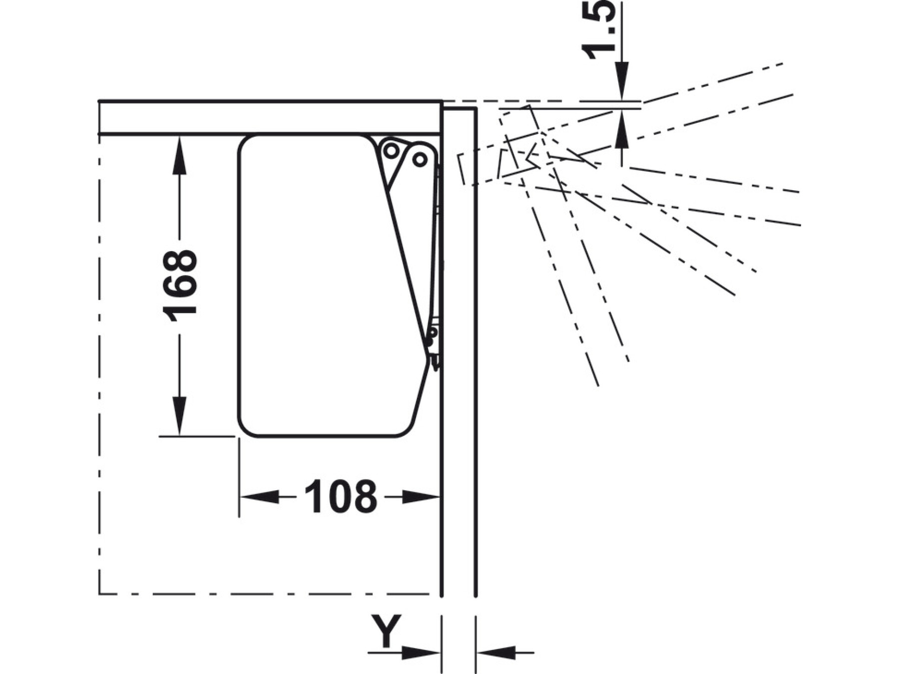 The Free Flap 1.7 Comp Set C offers a 107 degree opening angle. If you need a more restricted opening for space reasons, the opening angle can be reduced to 90 degrees using an opening angle restraint.