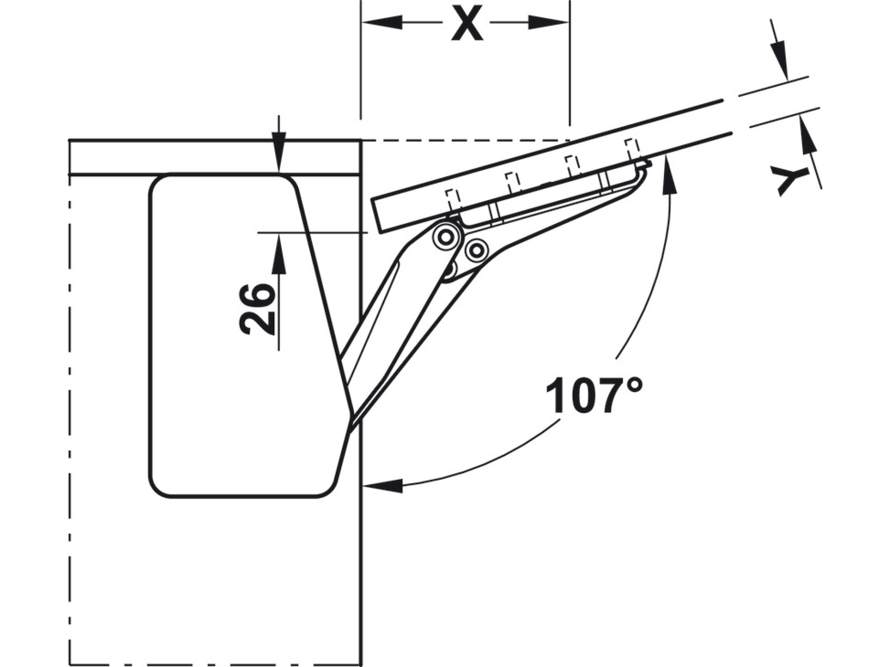 Designed for cabinets with a height of 200–450 mm, the Free Flap set is compatible with lid materials including wood, glass, or aluminium frame. With its one-piece flap type and a generous 107° opening angle, it’s perfect for comfortable access—while the opening angle can be reduced to 90° using an opening angle restraint (available separately).