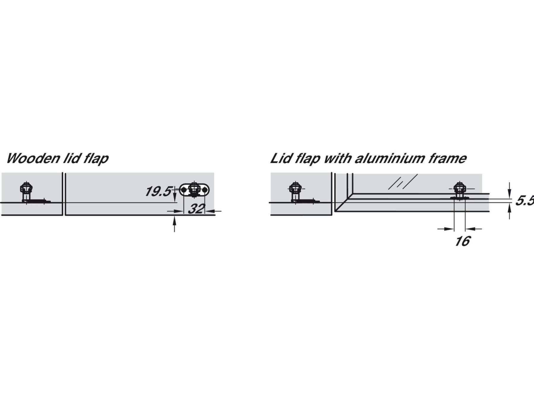 for flaps made from wood or with aluminium frame, from frame width of 45 mm