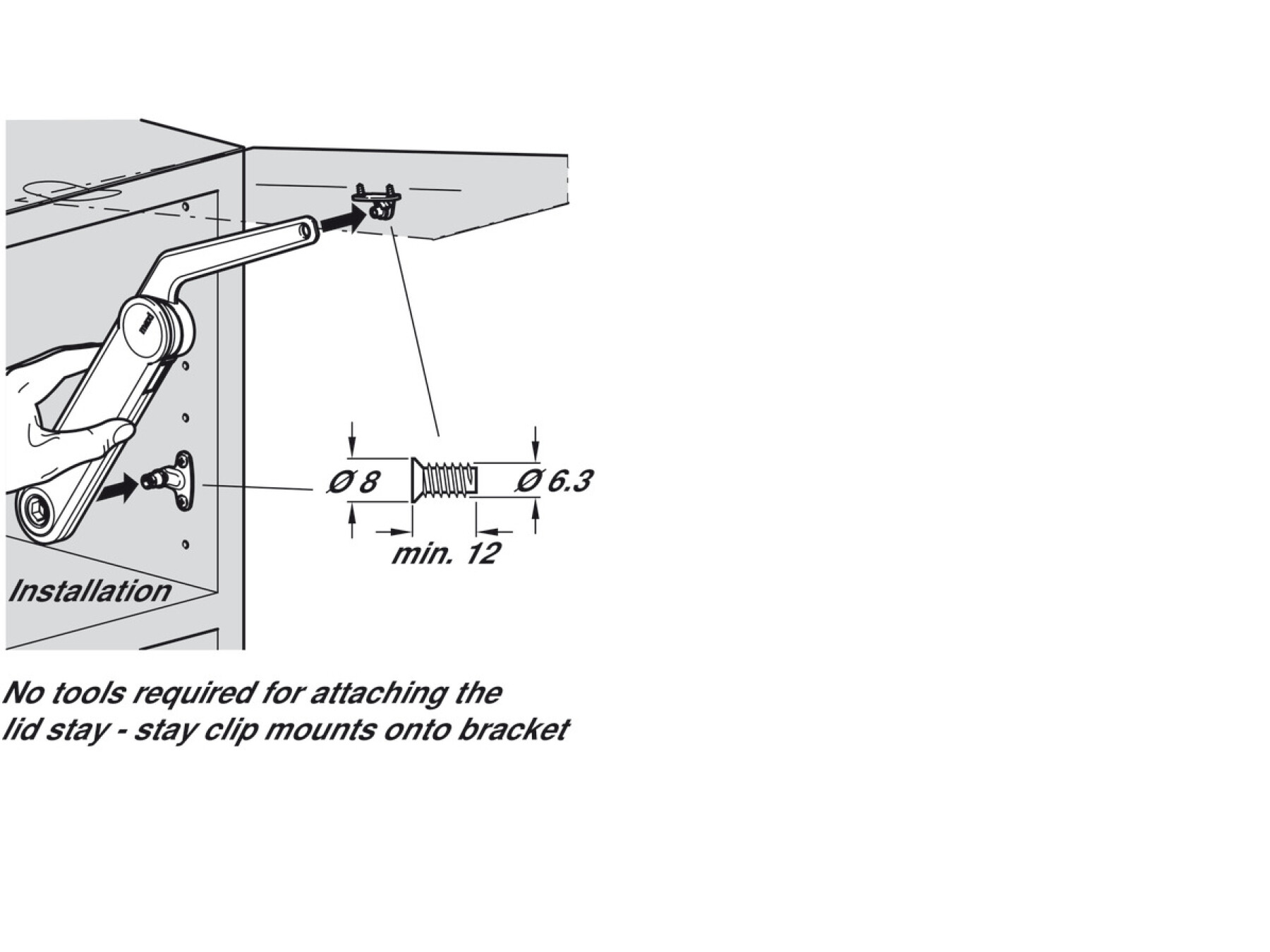 Clip mounting on pre-mounted screw fixing brackets included, no tools required