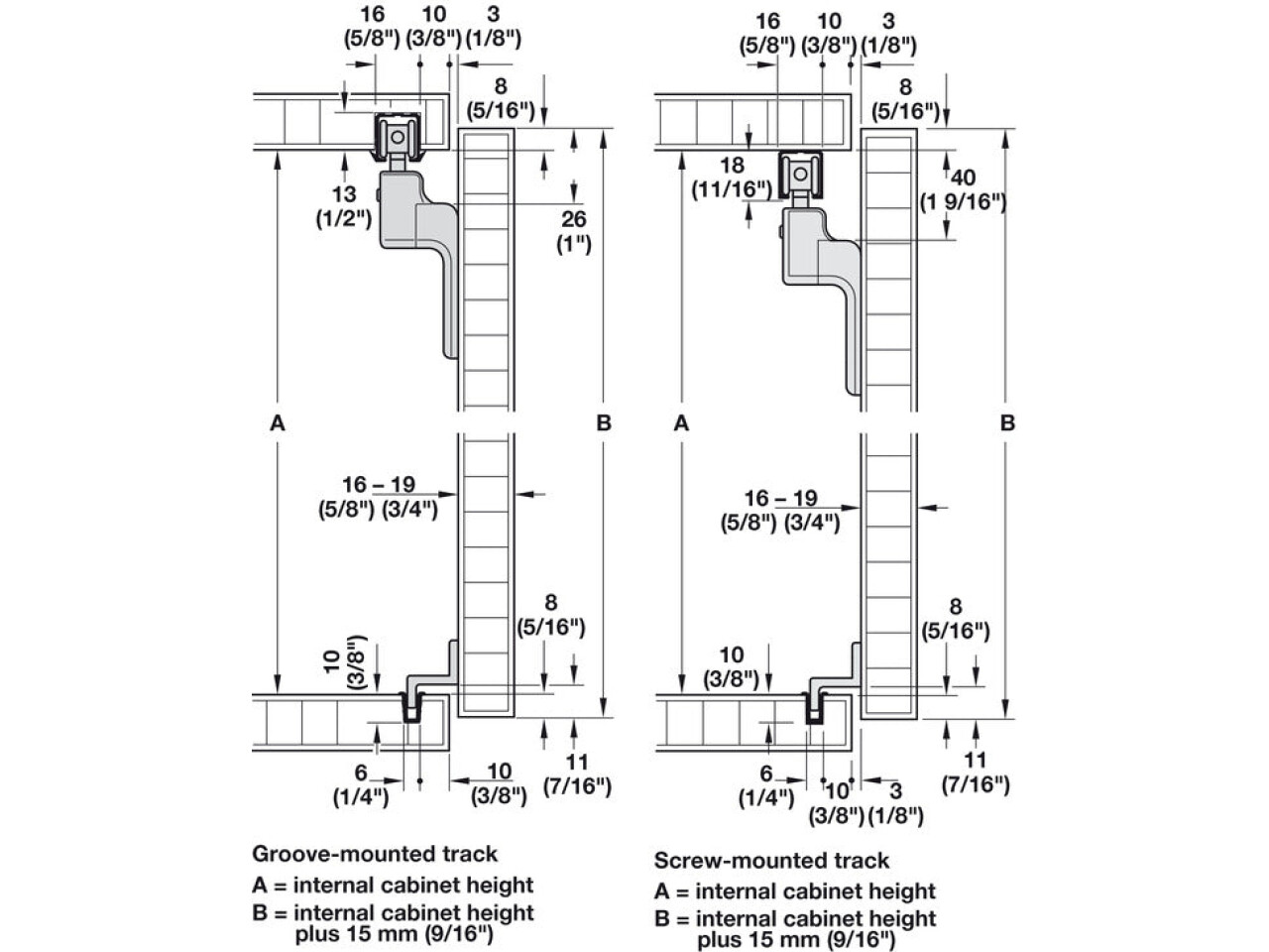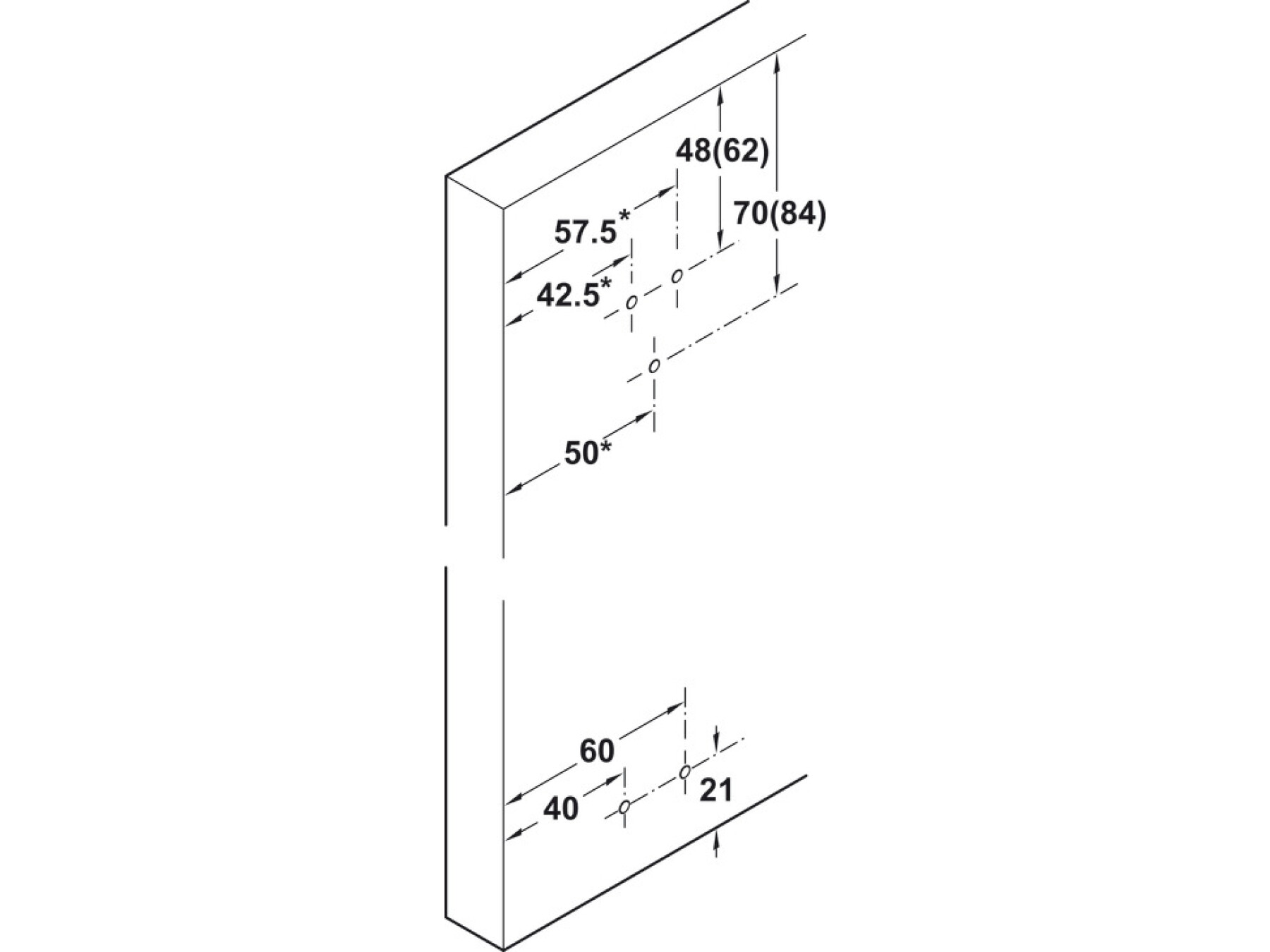 The dimensions 48/70 are increased by 14 mm when using tracks for screw fixing.