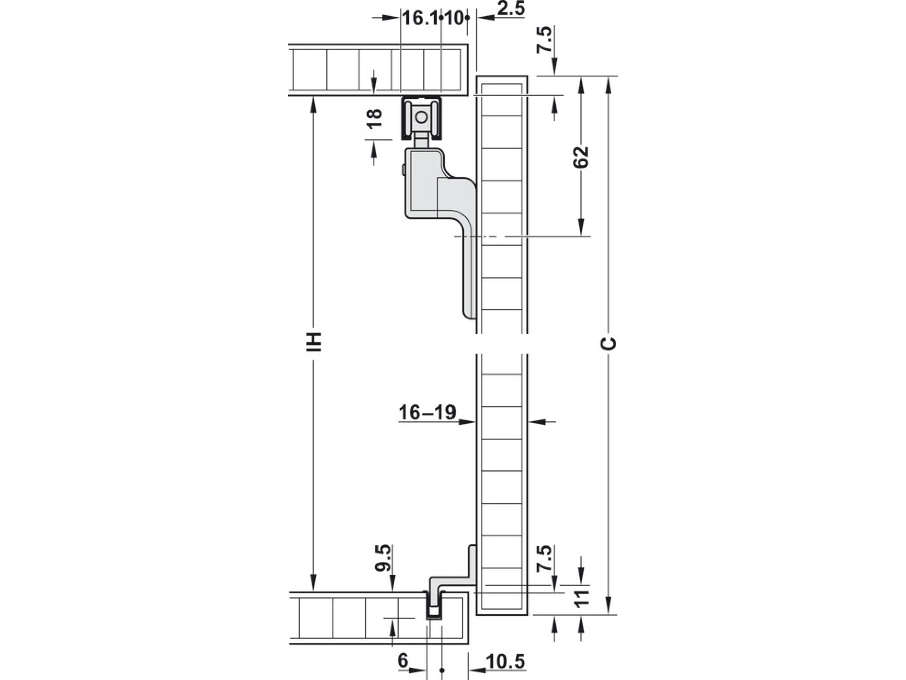 Min. 350 mm with soft closing mechanism on one side, min. 530 mm with soft closing mechanism on both sides