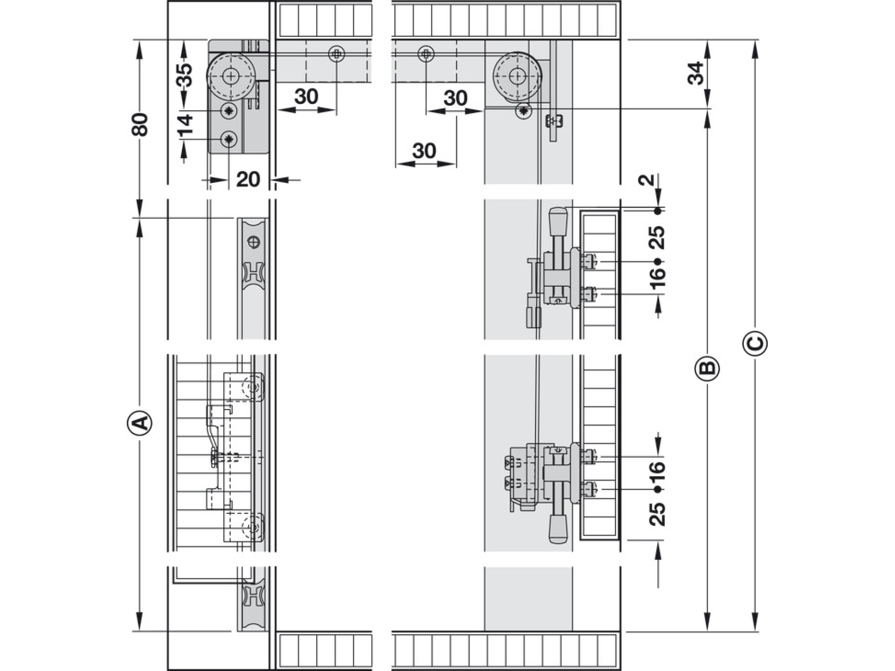 Fitting Set, for Vertically Sliding Cabinet Doors, Hawa-Libra 20 H. (Product Part No: 403.20.002) is a heavy duty sliding and folding door fitting set built for smooth, controlled movement—ideal for premium inset cabinet doors and contemporary interior installations. Designed as counterweight-assisted hardware for two doors, this system helps balance the door for easier operation and a stable, precise run every time.