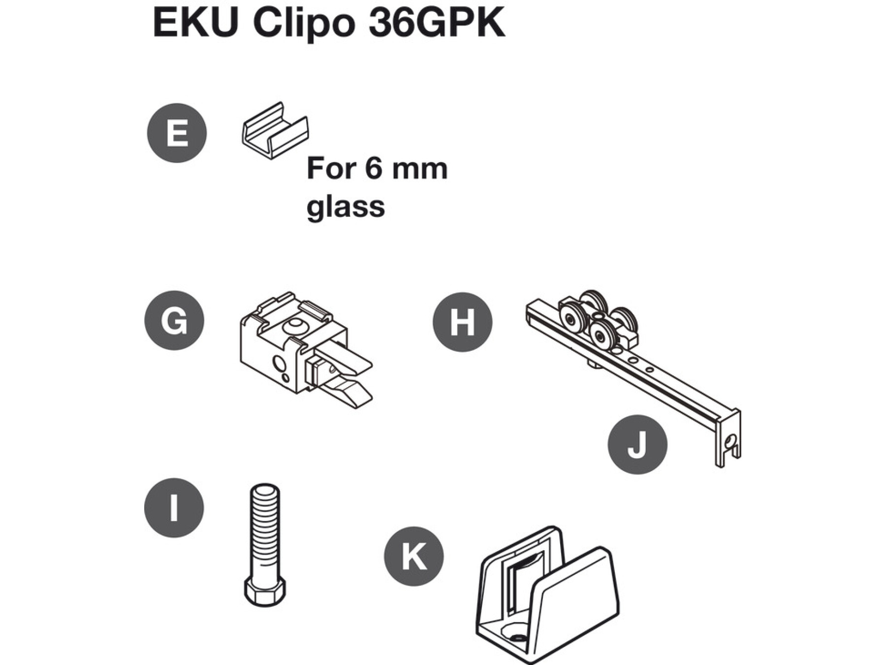 Designed for comfort and control, the Eku Clipo 36GPK FitSet includes a soft closing mechanism with a clip-in door stopper. It guides the door into the running track smoothly, reducing impact at the end of travel—perfect for kitchens, wardrobes, offices, and premium cabinetry where quiet performance matters.
