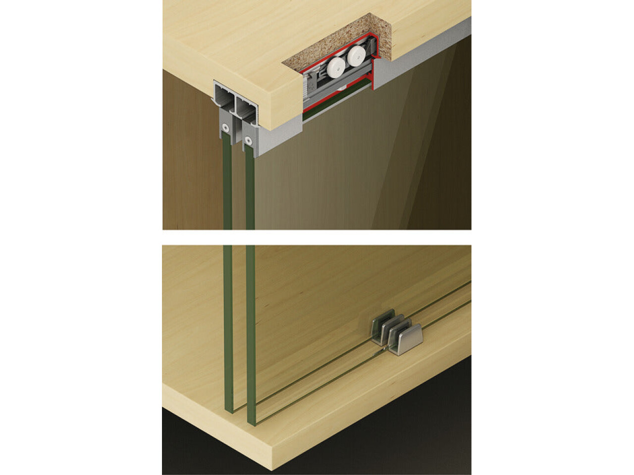 Product Part No: 405.02.410. Choose the Fitting Set, for Sliding Glass Cabinet Doors, Hawa-Clipo. for a strong, professional top hung solution—built for long-lasting, effortless sliding action.