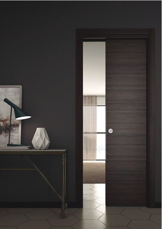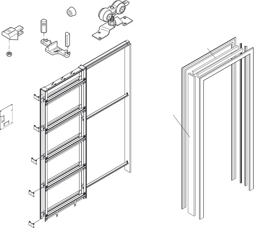 High quality straight sliding pocket door system for residential and commercial applicationsA finished wall thickness of both 100 and 125 mm can be achieved with a single pocket door frameSupplied in flat pack format for ease of handling and storage, comes complete with an internal timber jamb finishing set to achieve a finished wall thickness of 100 mmThe design incorporates intermediate horizontal bars on both sides within the outer pocket frame providing strength and durabilityTop frame brackets can be turned through 90° to achieve a finished wall thickness of 125 mm (additional external jamb set required)The sets are door size specific and cannot be adapted for doors of sizes that are different to those specifiedThe sets come complete with an internal timber jamb finishing kit in neutral Tanganika which can be stained or painted as required, this achieves a finished wall thickness of 100 mmFor straight doors only - for bi-folding doors please contact us