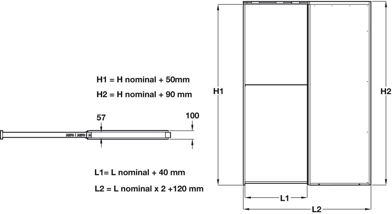 • Door weight: Max. 160 kg (80 kg with soft close)