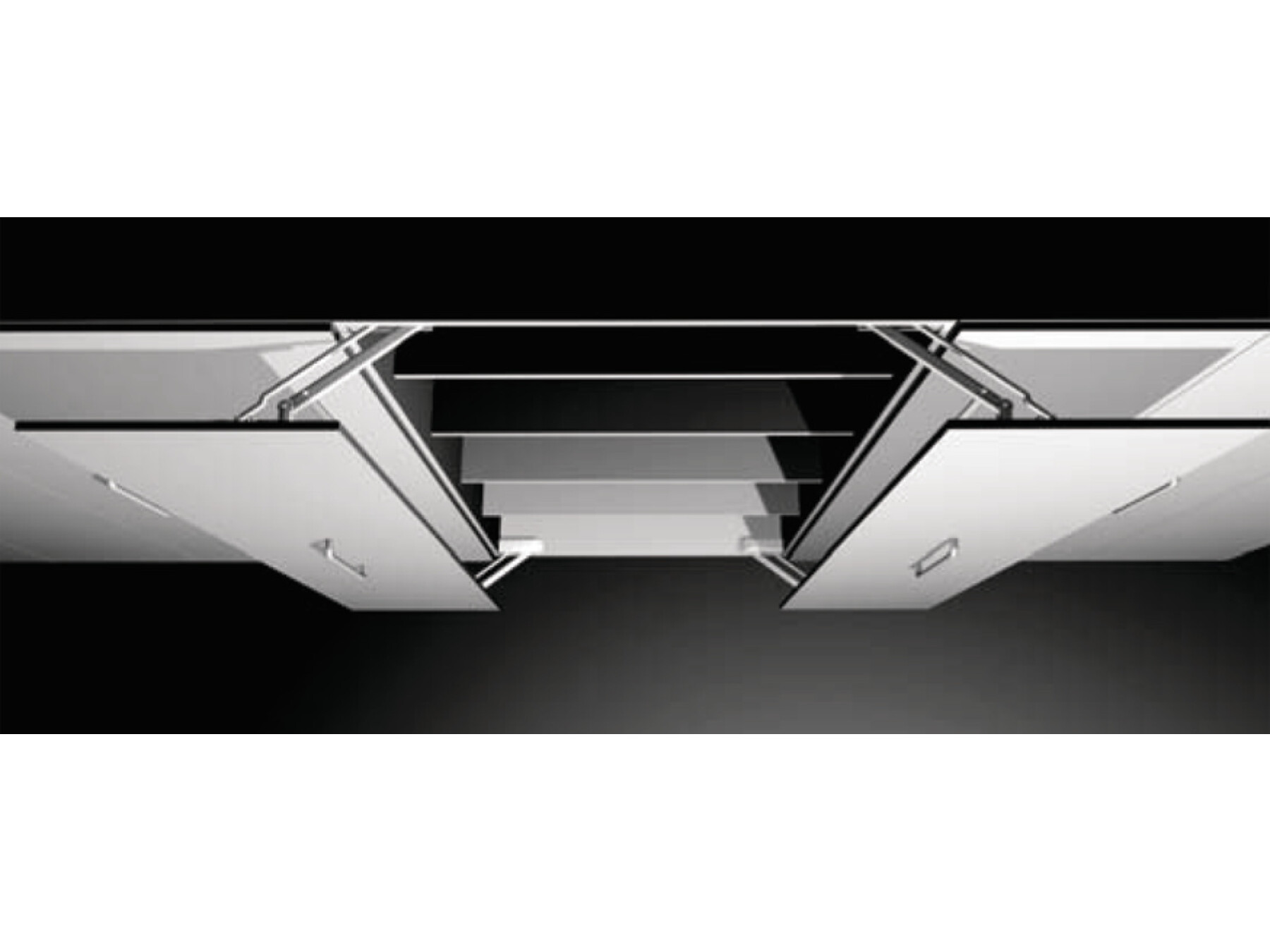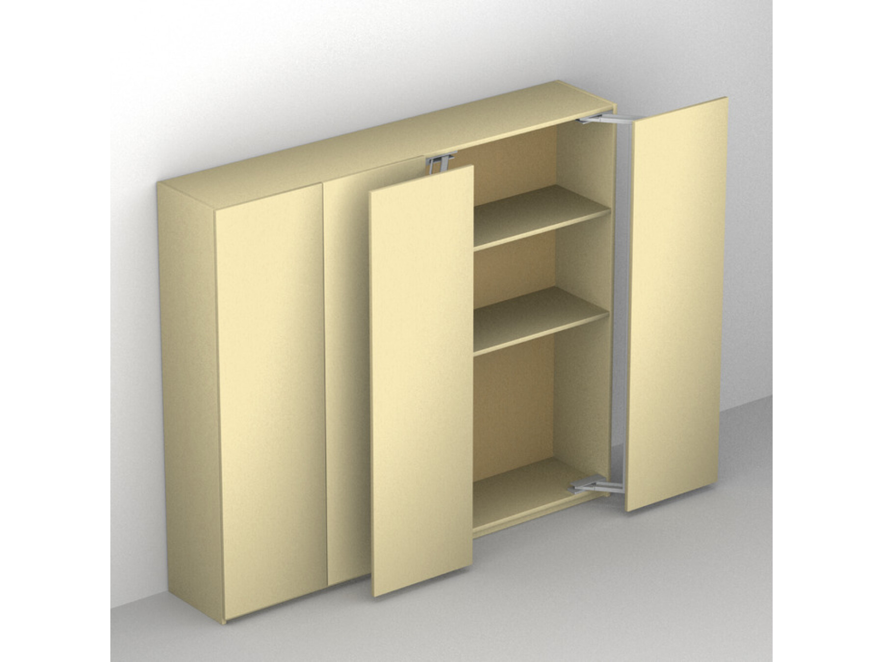 Moves doors forward and away to the side, allowing maximum access to the cabinet
