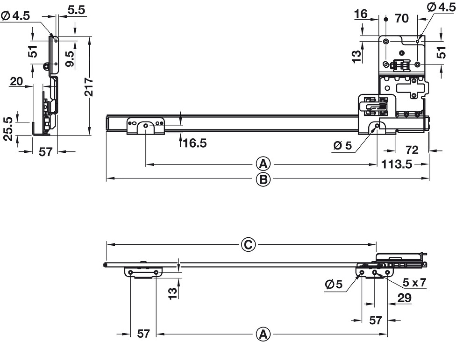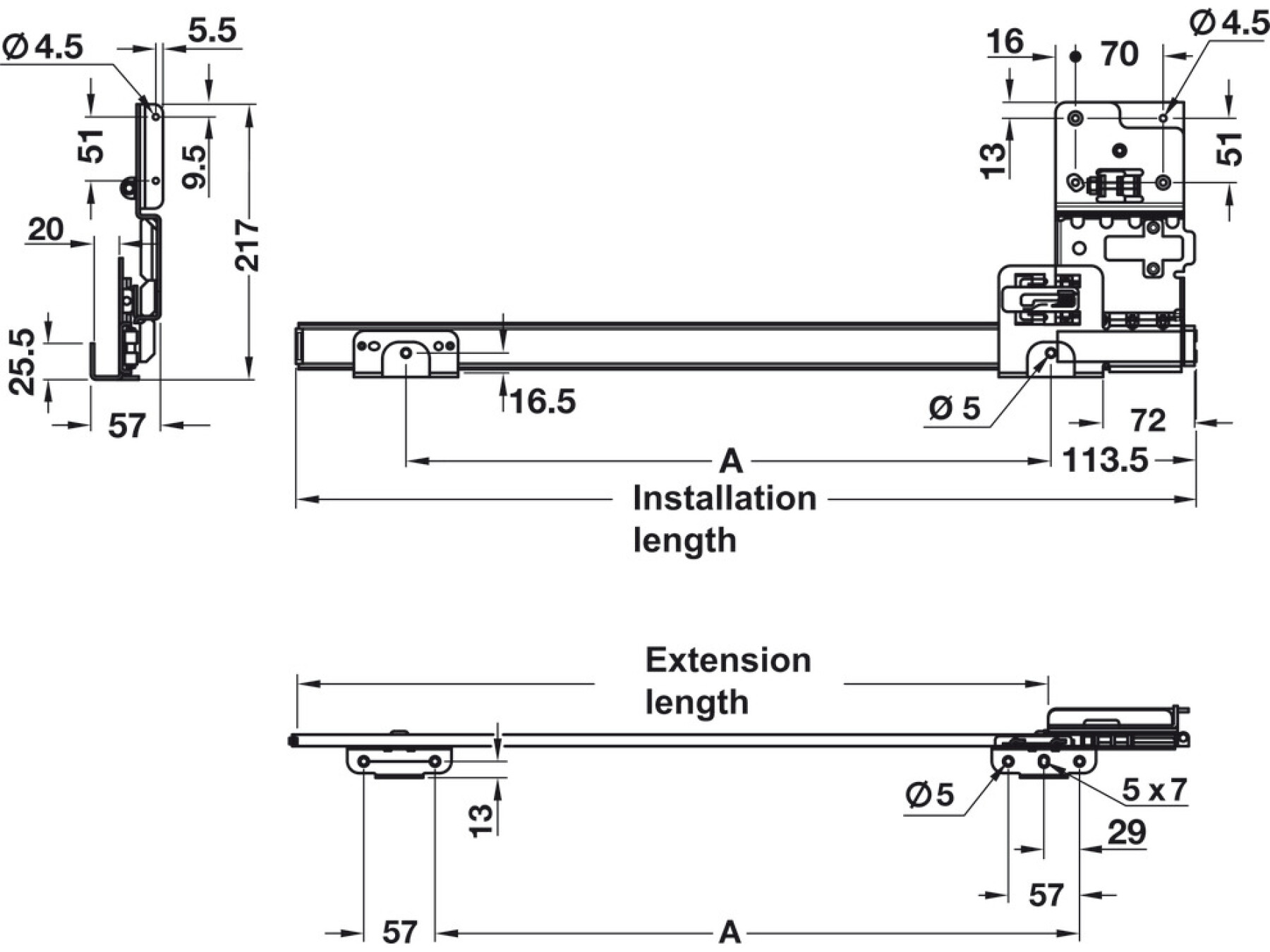 Accuride 1321 Pivot Sld DrRun Blk 710mm
