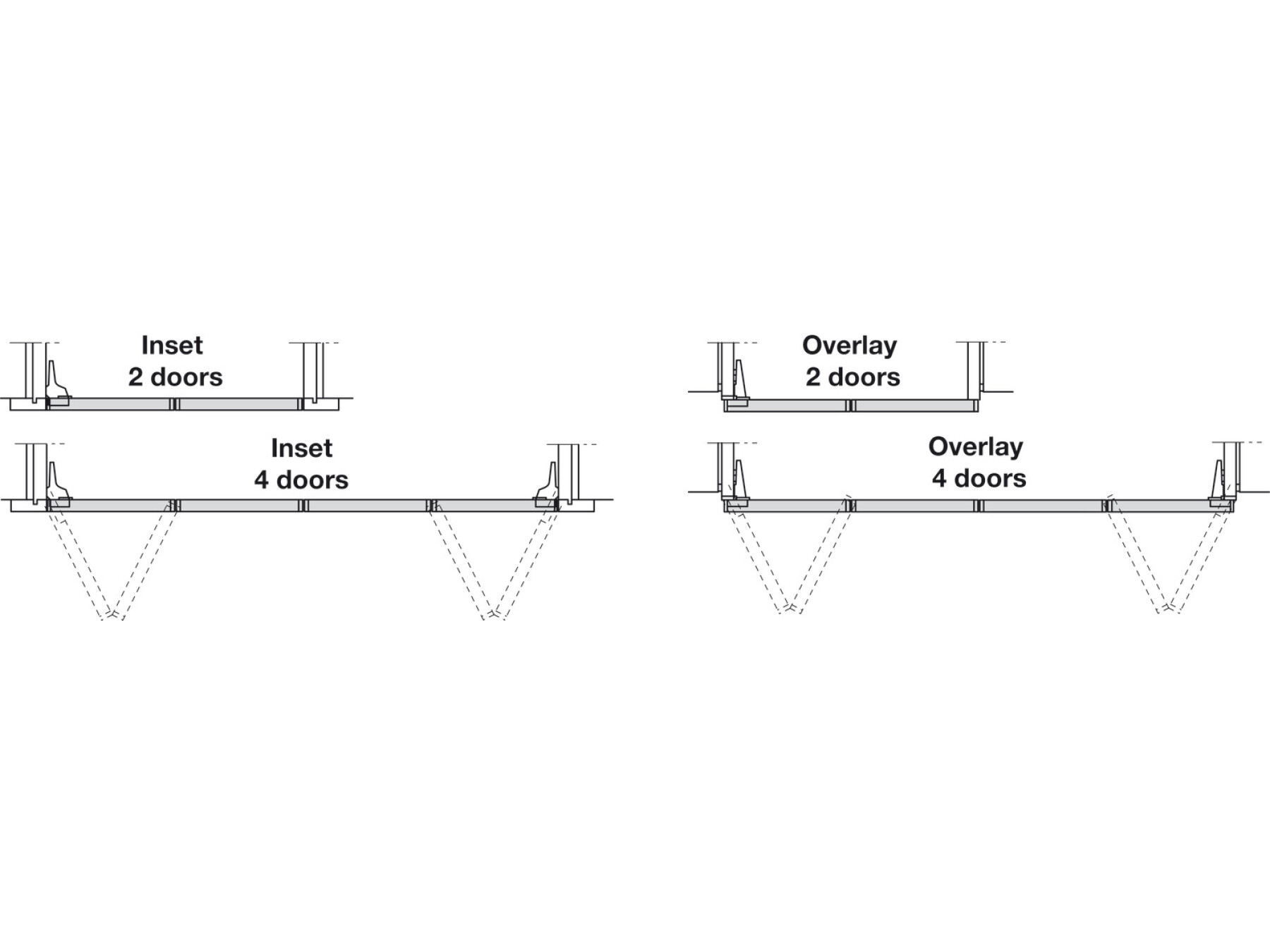 Components accommodate either overlay (Vorfront) or inset (Infront) pairs of doors