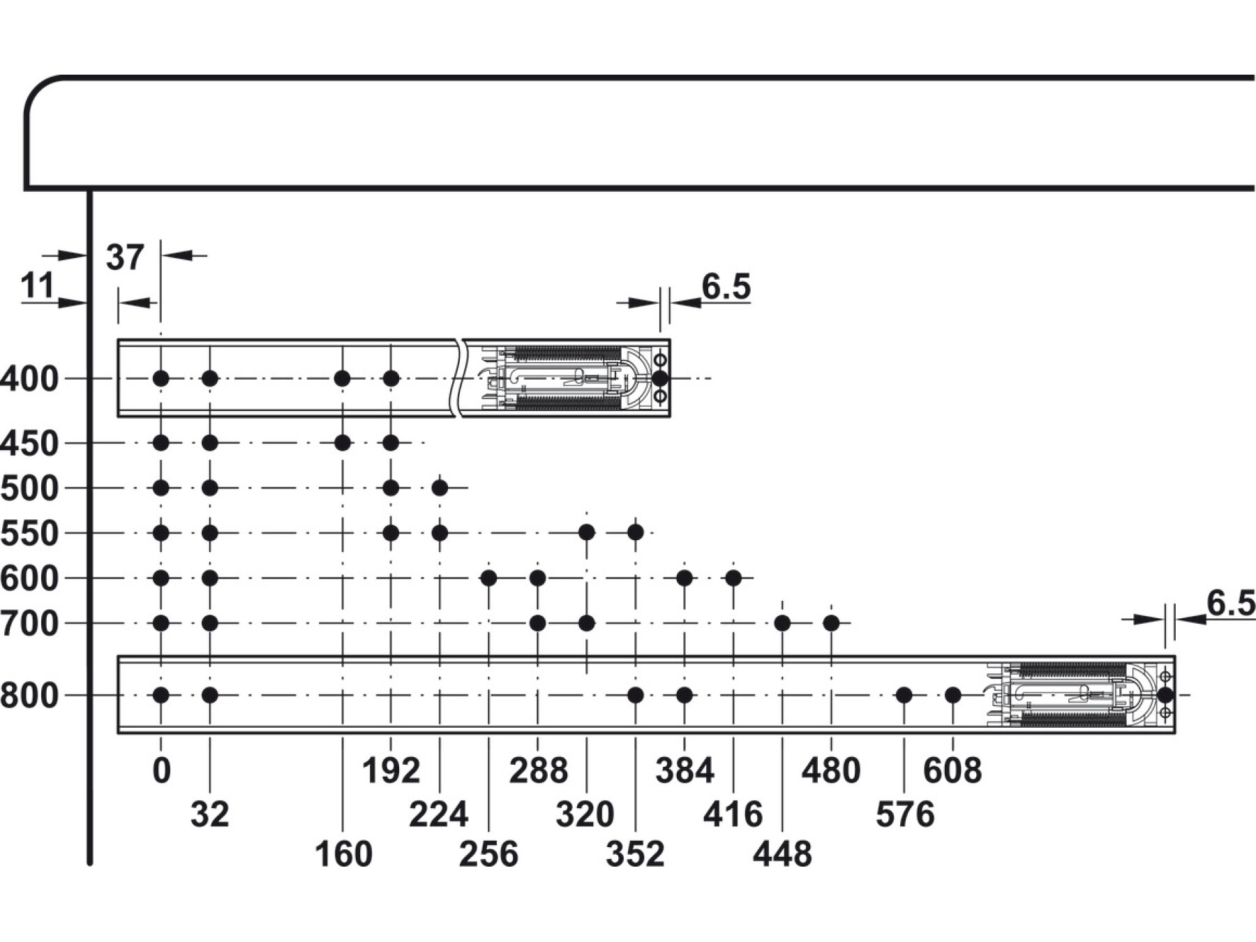 19.1 mm slide thickness. 32 mm drilling pattern