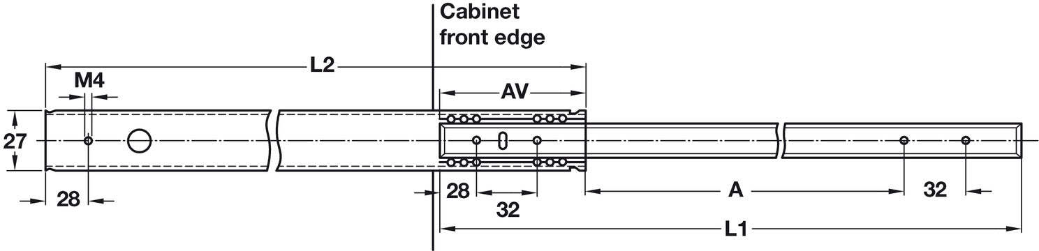 - BB Drawer Runner 27mm Groove Sgl 12kg 278-452mm
