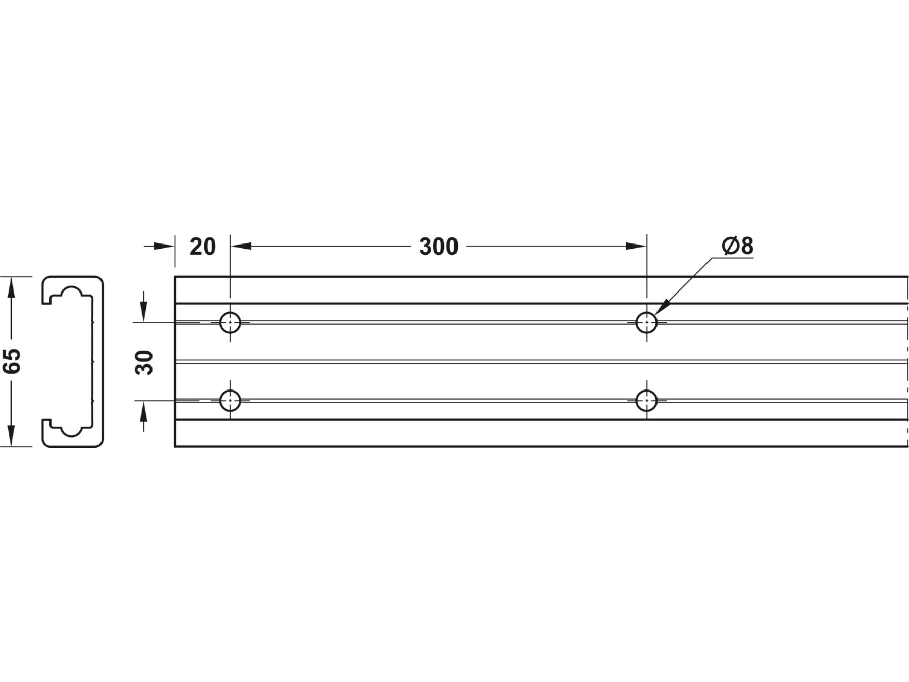 Ball carriages, end stops, M6 fixing screws and accessories to be ordered separately