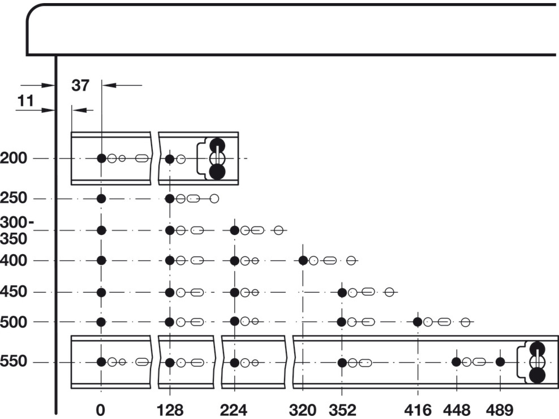 Installed length 400 mm, load capacity 45 kg