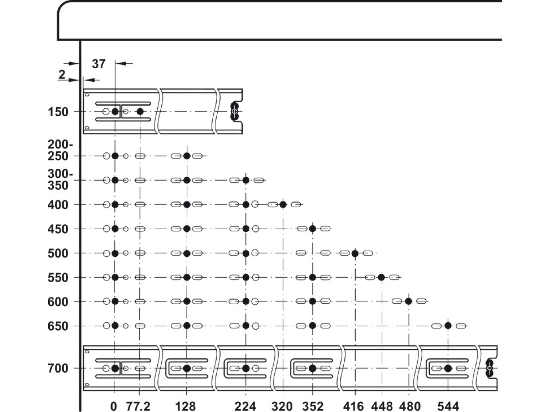 32 mm drilling pattern