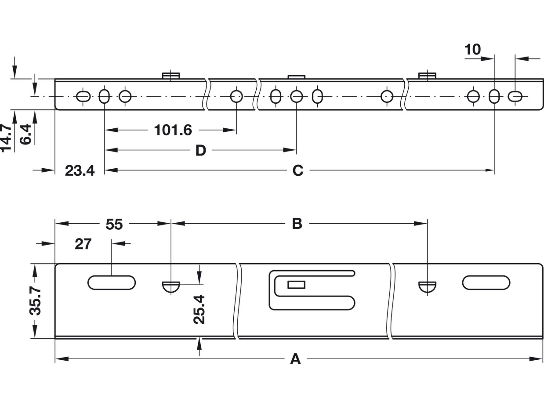 For bottom mounting of drawers or, when inverted, for platform mounting of shelves