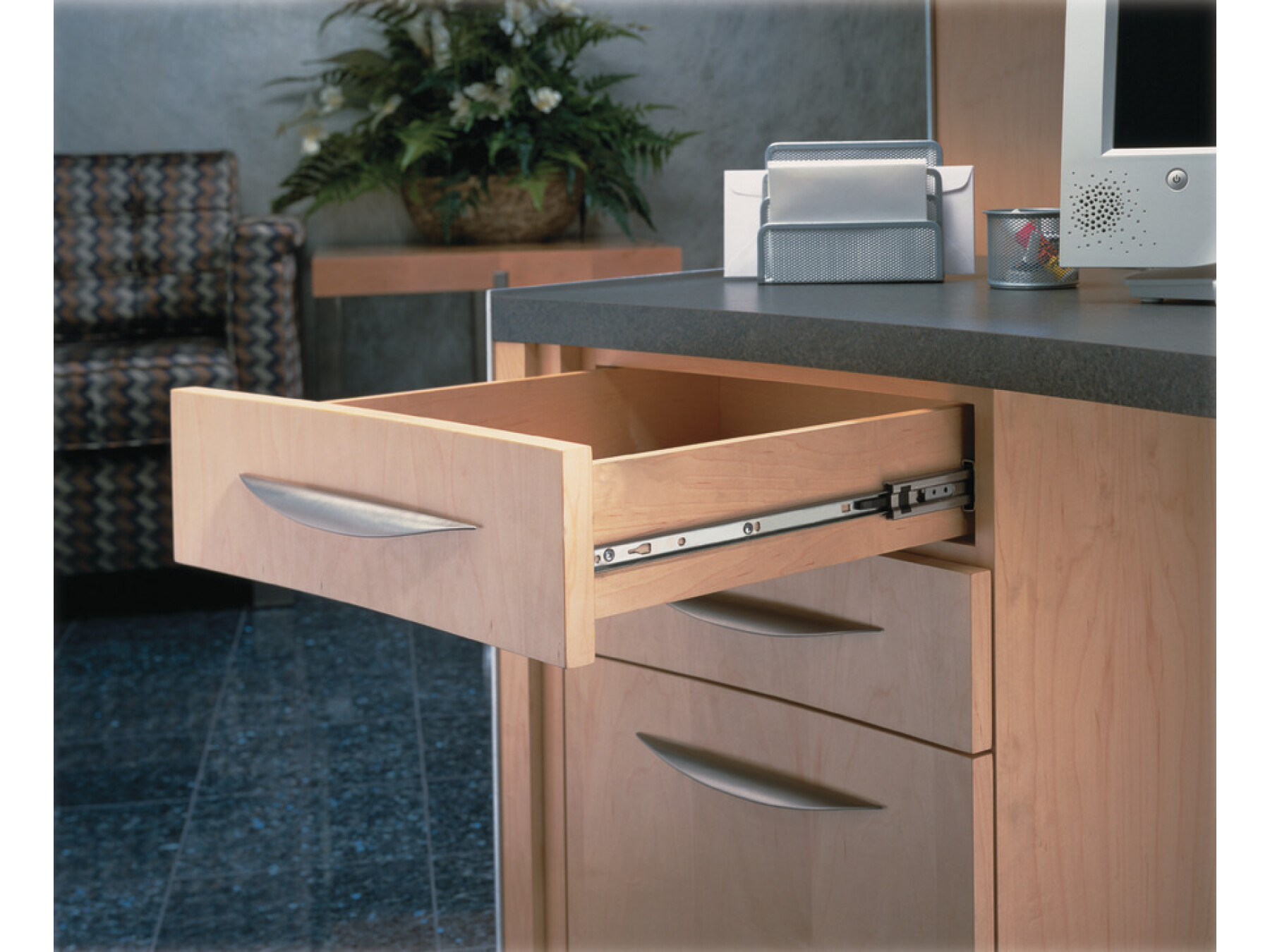 Hold-in feature holds the closed drawer in